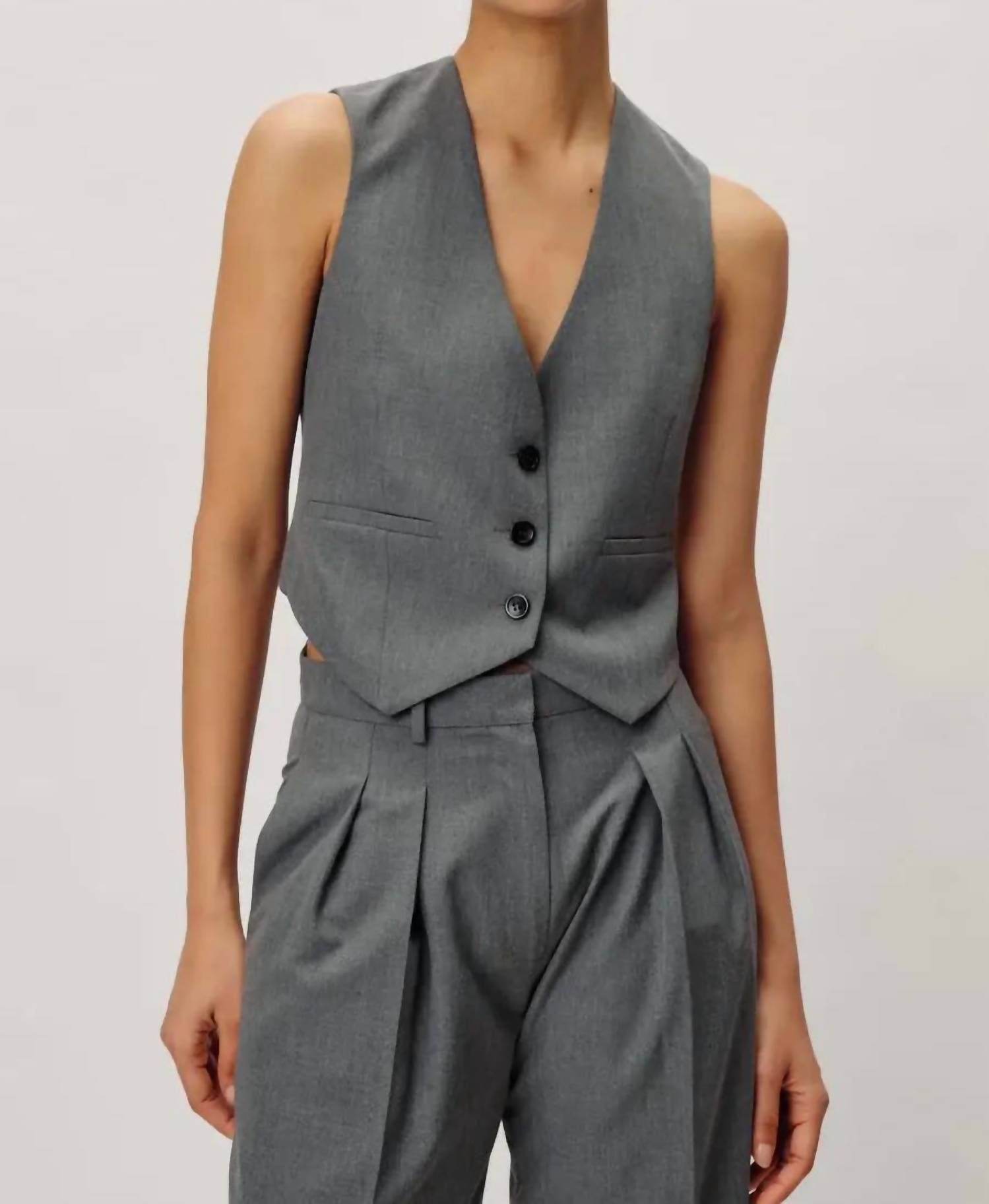 A vest so versatile you can mix and match it with almost any outfit and it will feel brand new every time. Fabrication: Solid Suiting. Composition: 63% Pes, 34% Viscose, 3% Ea. Triple button closure. Has pockets. True to size. Comfortable and relaxed fit.