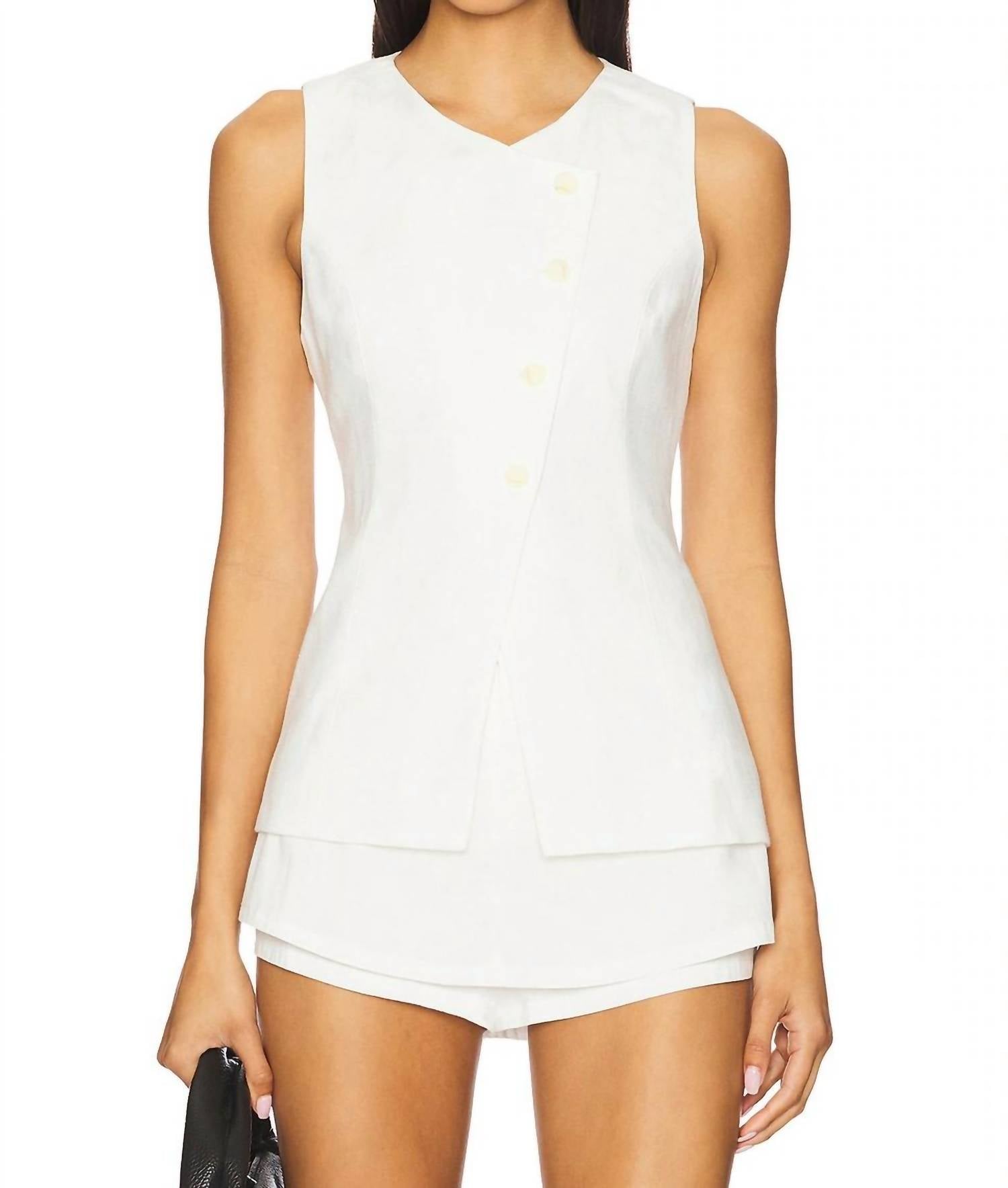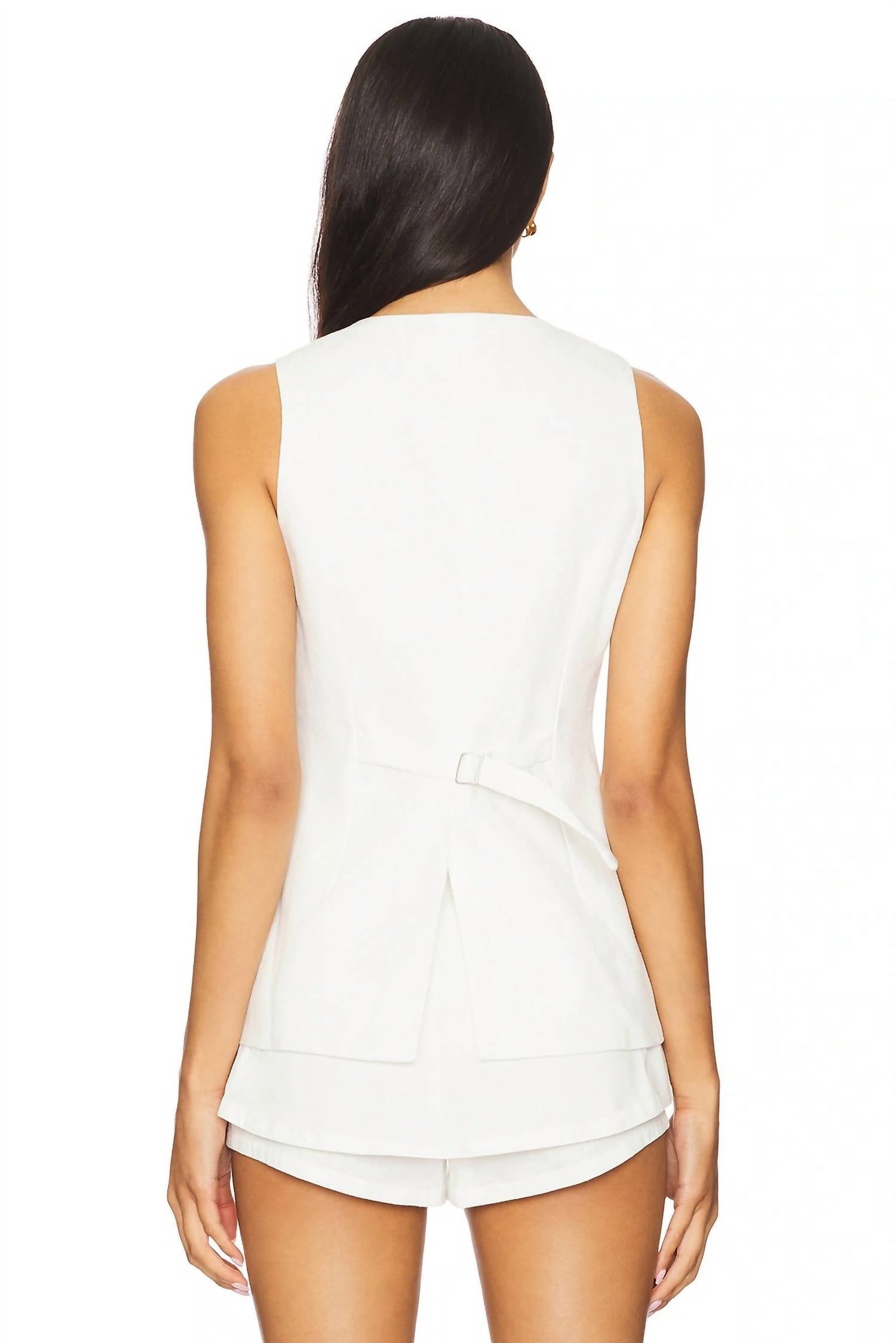 That extra layering piece you didn't know you needed! Introducing the Sonja Vest by ASTR, a minimalist essential for your Spring wardrobe. This sleeveless vest in a solid white hue is crafted from a luxurious linen blend composed of 60% linen and 40% cotton, providing a crisp and breathable feel. It features a stylish V-neck and a sleek button closure, made for a clean and modern look without the distraction of pockets. Perfect for engagement occasions, this vest is dry clean only, ensuring your piece stays pristine.