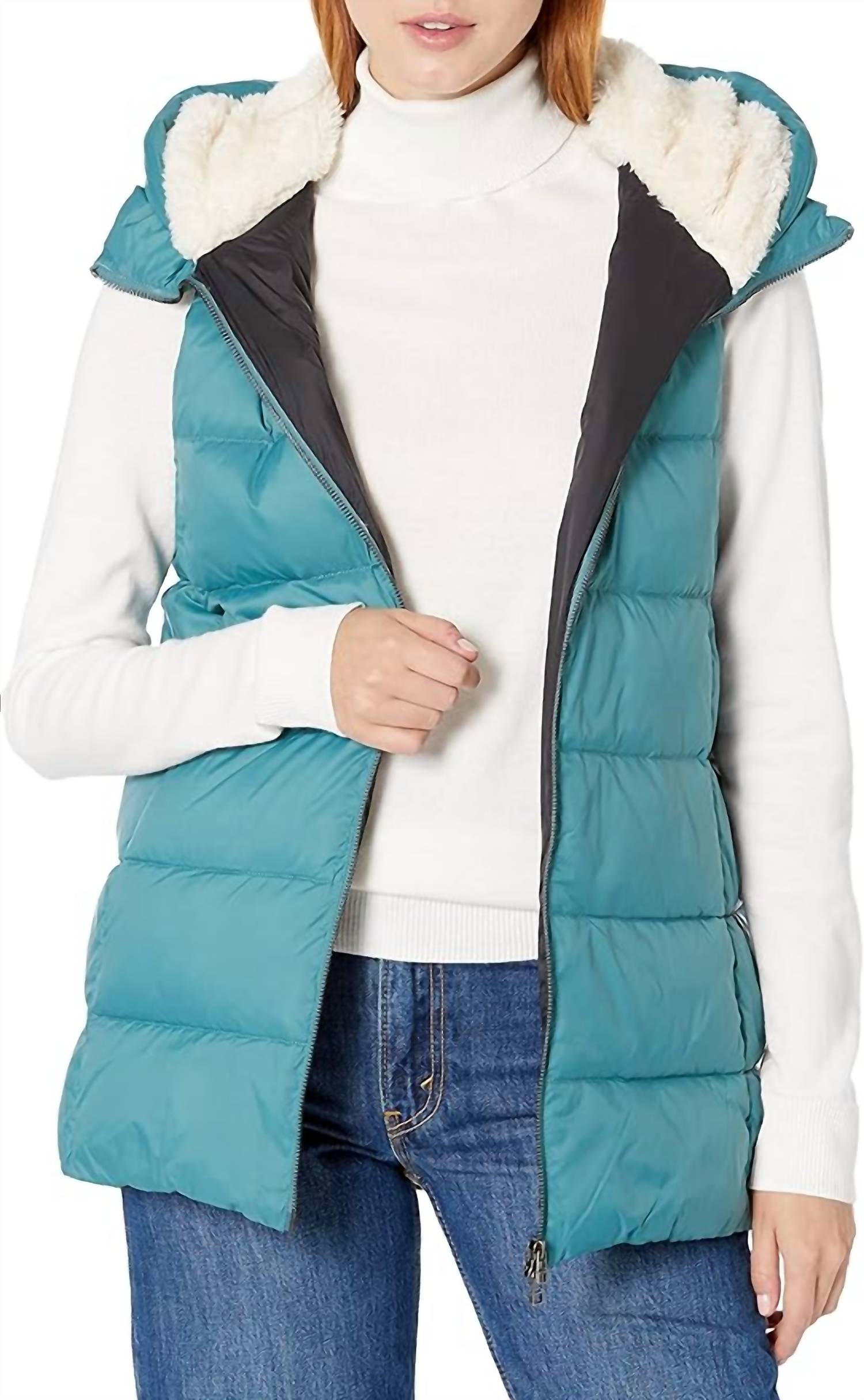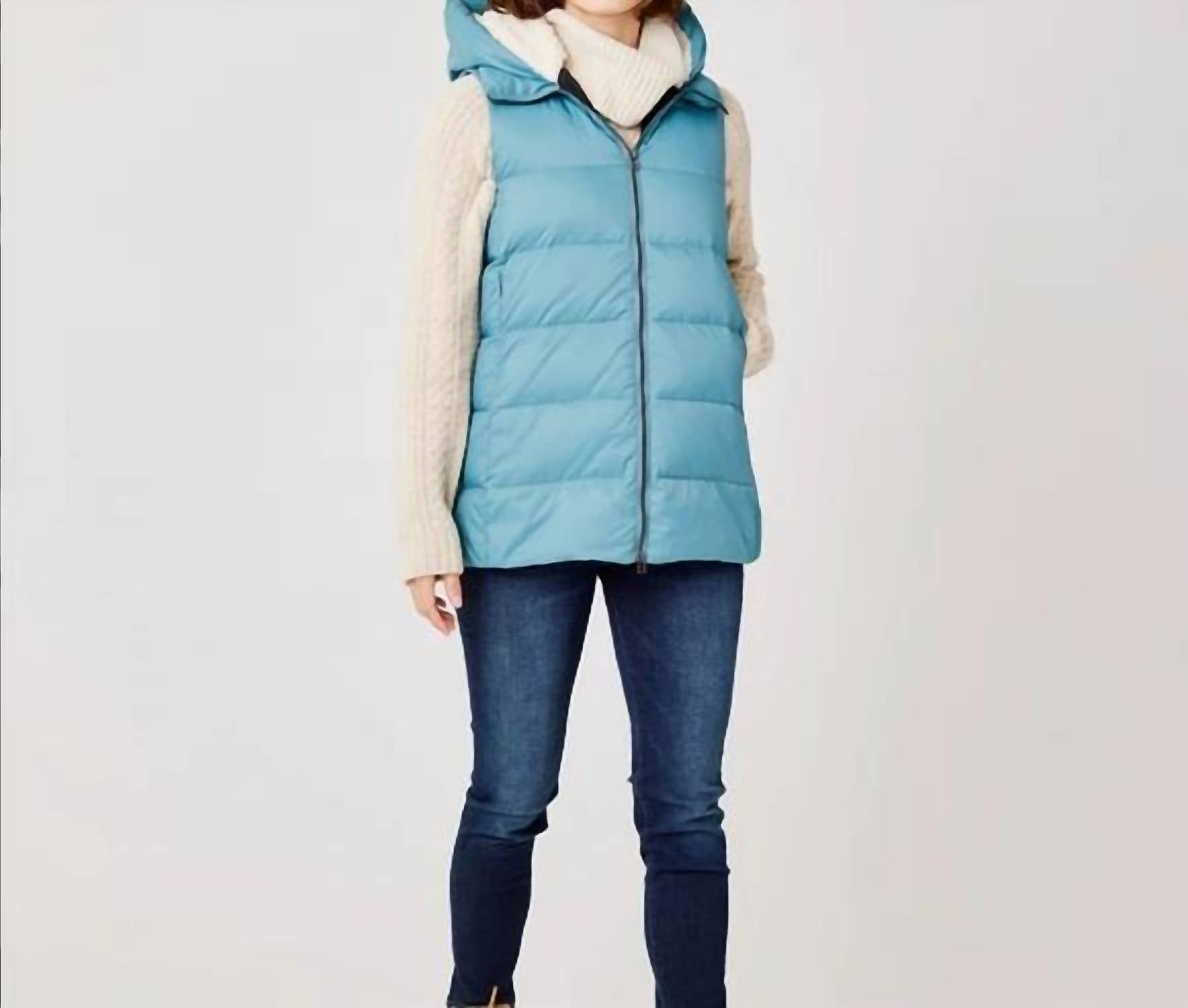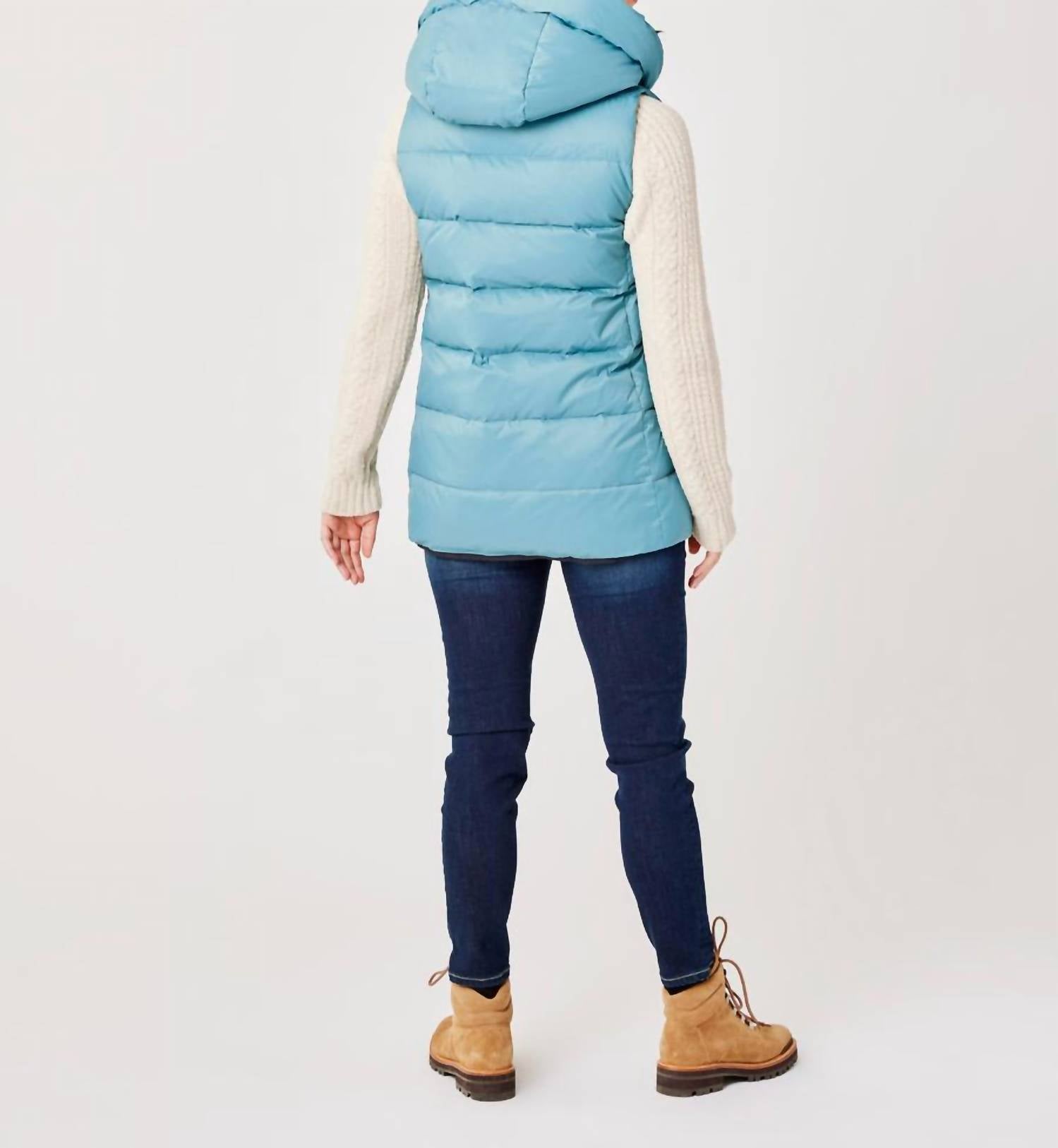 Throw this vest over an all black outfit for a perfectly polished look. The Davos Down Vest by Carve Designs in Hydro is the ultimate blend of style and practicality for winter wear. Crafted with a sleek and solid pattern, this sleeveless vest offers convenient pockets for added utility. It features a hooded neckline and is equipped with a zip closure. Care for this item is simple with machine wash and tumble dry instructions.