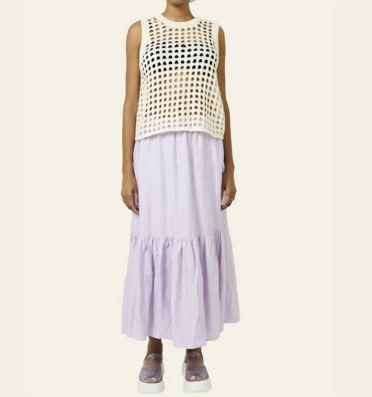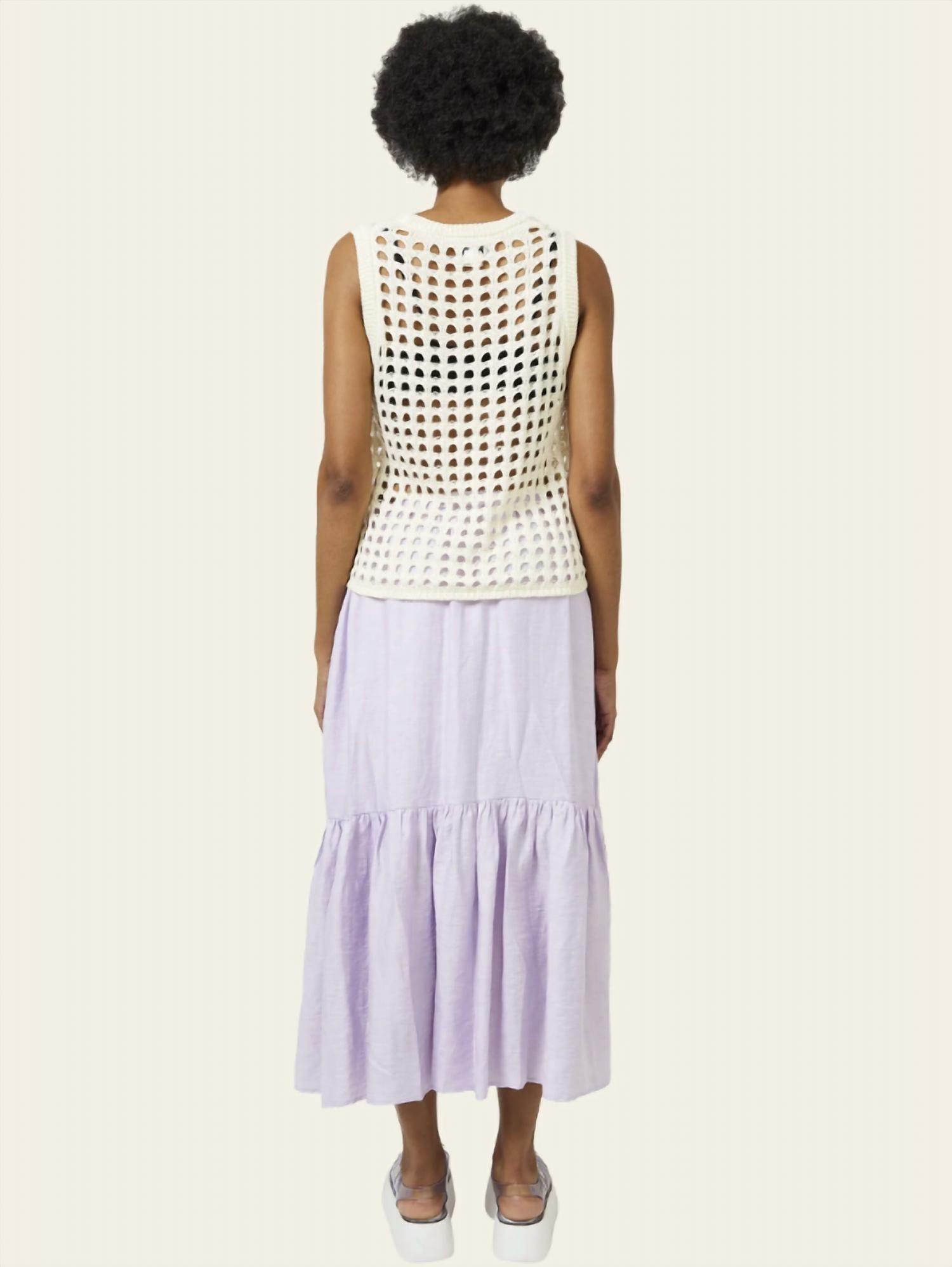 Throw this vest over an all black outfit for a perfectly polished look. Elevate your summer wardrobe with the Mela Oversized Crochet Vest by Find Me Now, designed for effortless style and comfort. This sleeveless vest is crafted from a delicate viscose blend featuring an intricate crochet mesh with ribbed collar and armholes. Originating from a women-owned factory in China, this pull-on vest is true to size and showcases a refined textured pattern without pockets. For care, hand wash cold and lay flat to dry to ensure the longevity of this minimalist beach day essential. The model is 5'8" and wears an XS/S.