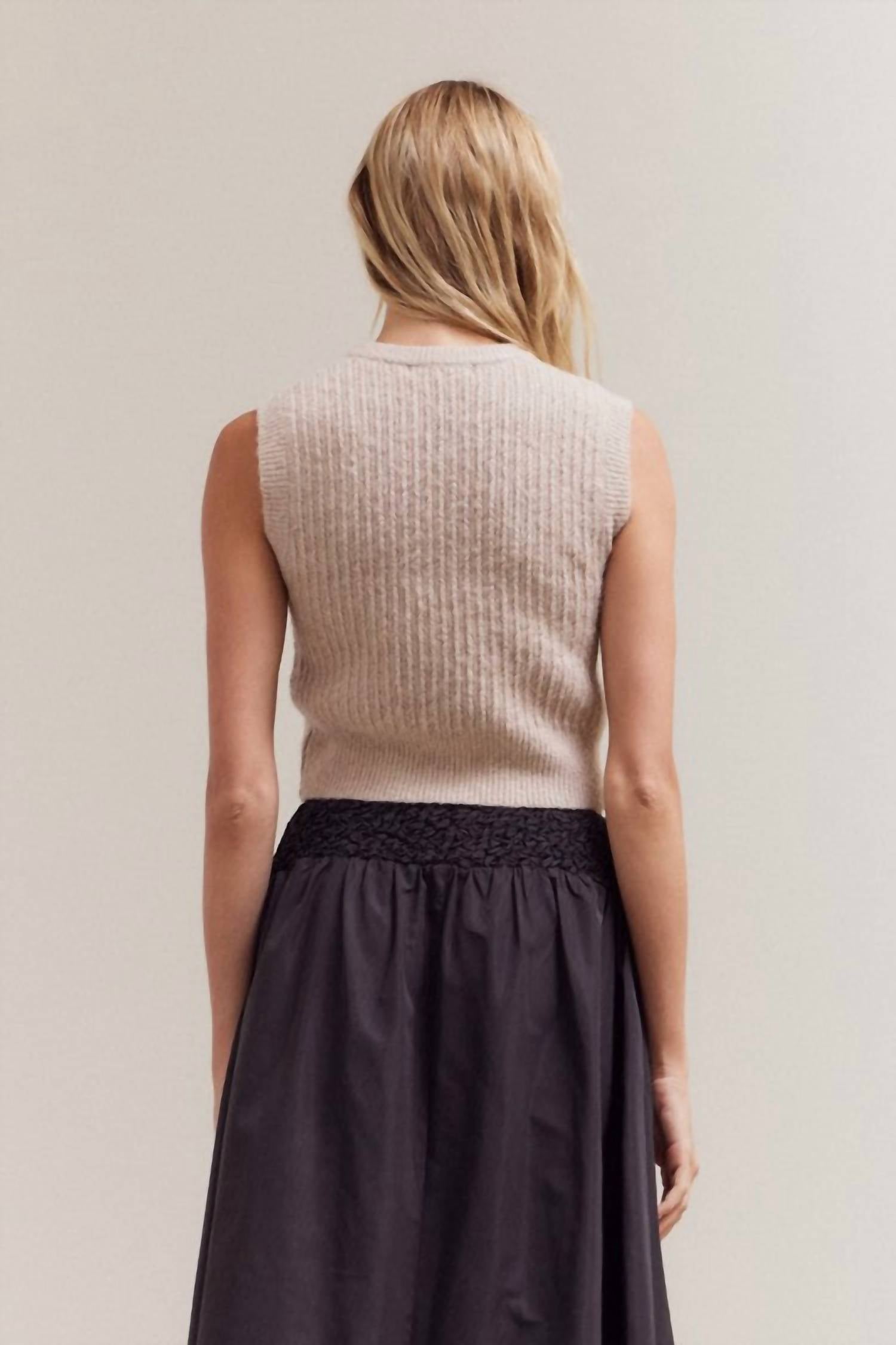 Throw this vest over an all black outfit for a perfectly polished look. The Kiley Knit Vest by GRADE & GATHER is a chic addition to your autumn wardrobe, perfect for holiday gatherings like Thanksgiving. This sleeveless, textured vest comes in a refined grey and beige colorway, offering vintage appeal with its tailored, slightly cropped fit. Made from a soft blend of 74% acrylic, 22% polyester, and 4% spandex, this piece is imported and features a convenient button closure. While specific care instructions are not provided, its composition ensures a comfortable and stylish ensemble for any fall occasion.