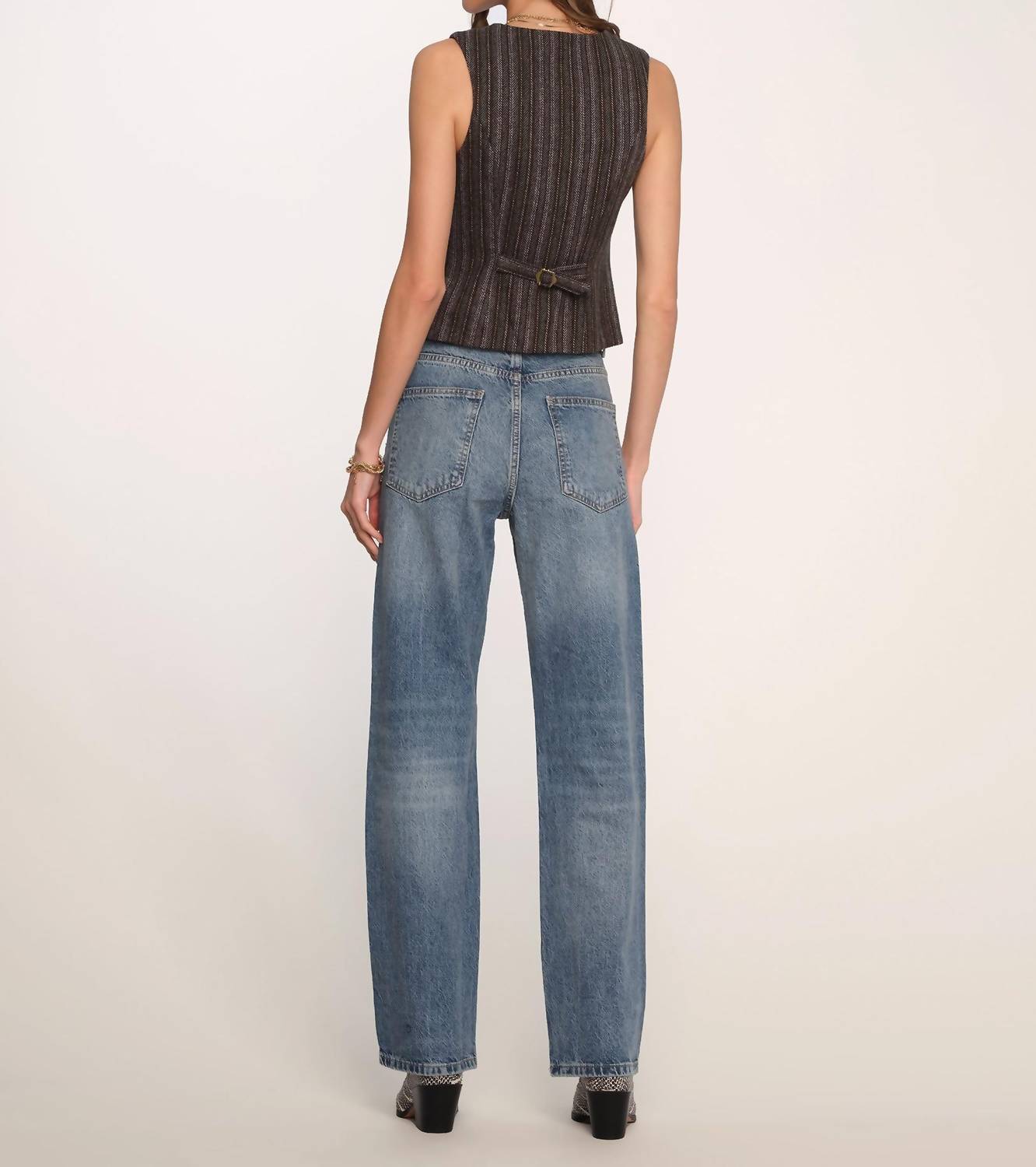 Throw this vest over an all black outfit for a perfectly polished look. The Britta Vest by Heartloom is an essential addition to your spring wardrobe, offering a chic and stylish look with its sleeveless, striped design in a striking blue. This women's vest features a V-neckline and brass button closure for an elegant finish. Perfect for an anniversary occasion, it seamlessly fits into streetwear trends. Care for this piece with dry cleaning to maintain its pristine condition.