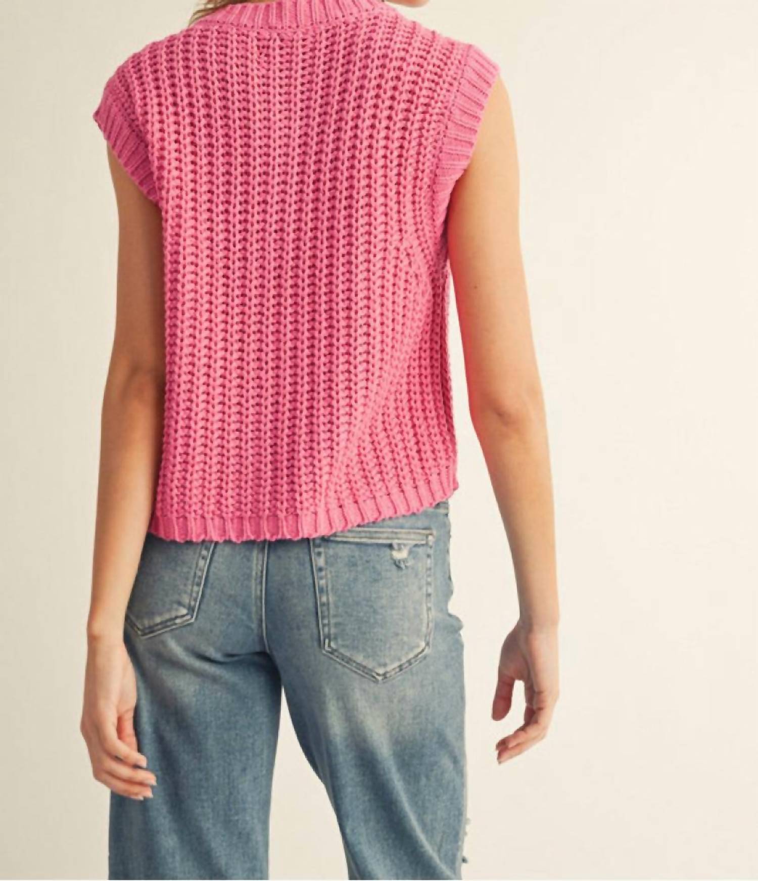 Throw this vest over an all black outfit for a perfectly polished look. Embrace the vibrant hue of the Hot Pink Stepping Into Fall Sweater Vest by Jodifl, perfect for a minimalist vacation look. This sleeveless vest, composed of comfortable cotton, features a V-neckline and handy pockets, making it both stylish and practical. The solid pattern design ensures versatility for your fall wardrobe. Originating from undefined, it closes with a button closure and should be hand washed and line dried for best care. The model, 5'9" tall, is wearing a size Small.
