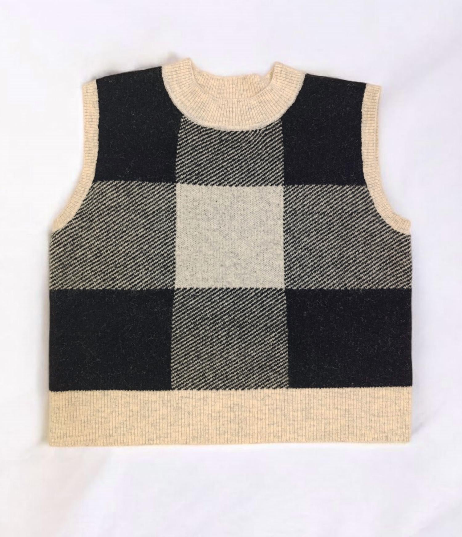 The Women's Sweater Vest by Kathie K is your new go-to for stylish fall layering with its plaid and check design in earthy brown and beige tones. This minimalist, sleeveless vest is perfect for Thanksgiving or any travel occasion, featuring a comfortable crewneck and convenient pull-on closure. Ideal for adding a textured layer, this piece seamlessly fits into any autumn wardrobe.
