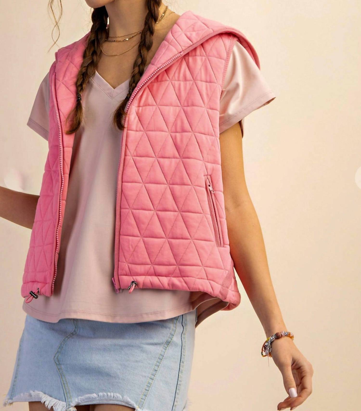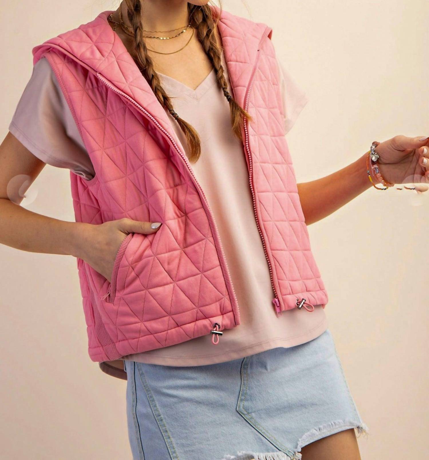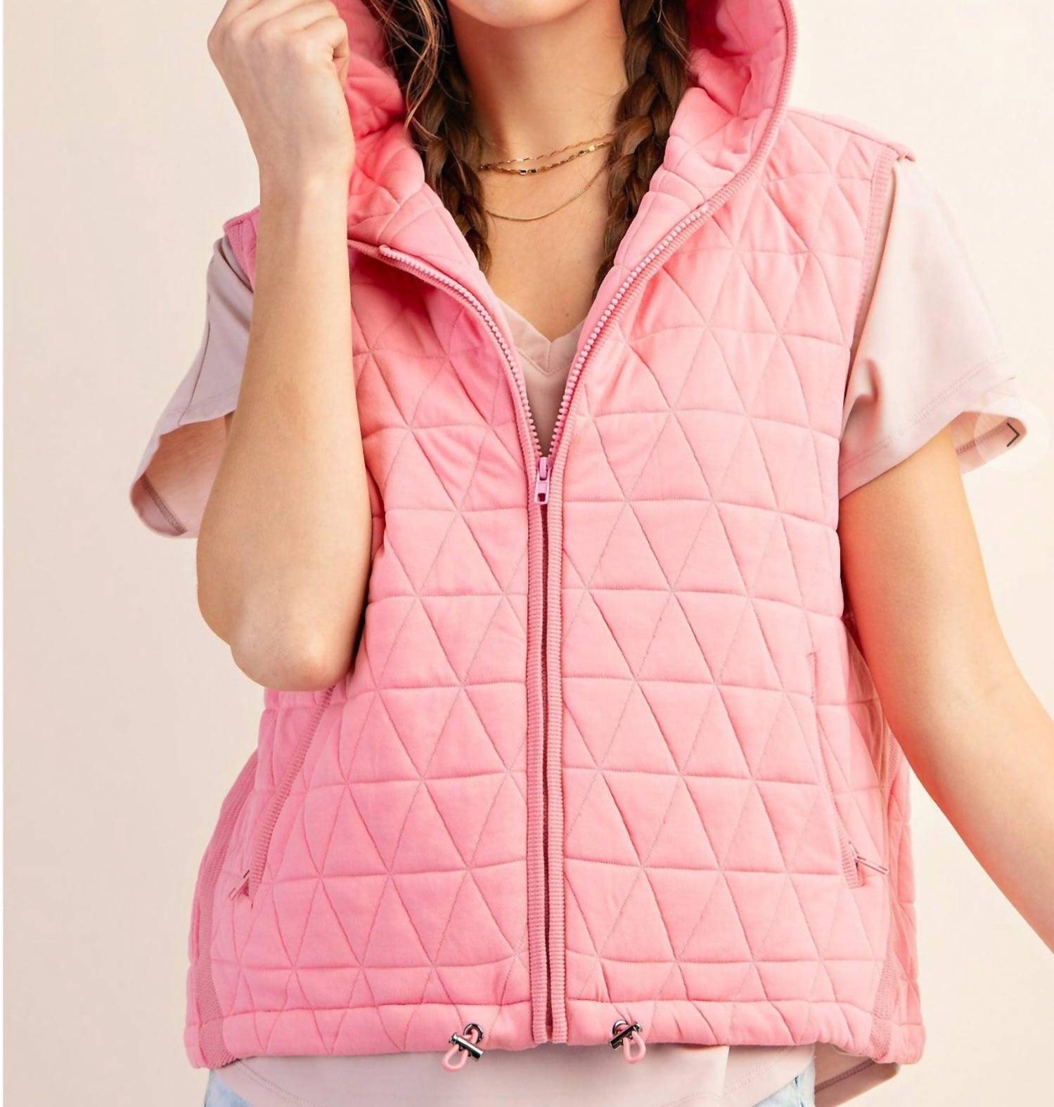 That extra layering piece you didn't know you needed! Embrace the Y2K trend with the Amy Quilted Women's Hoodie Vest by KORI, an essential addition to your spring wardrobe. This sleeveless vest in delightful bubble gum pink is both cozy and stylish, complete with a hooded neckline to keep you warm on any casual occasion. Designed with side pockets and a zip closure for practicality, it’s lined for added comfort. A patterned finish adds a fashionable touch, making it perfect for travel and layering.