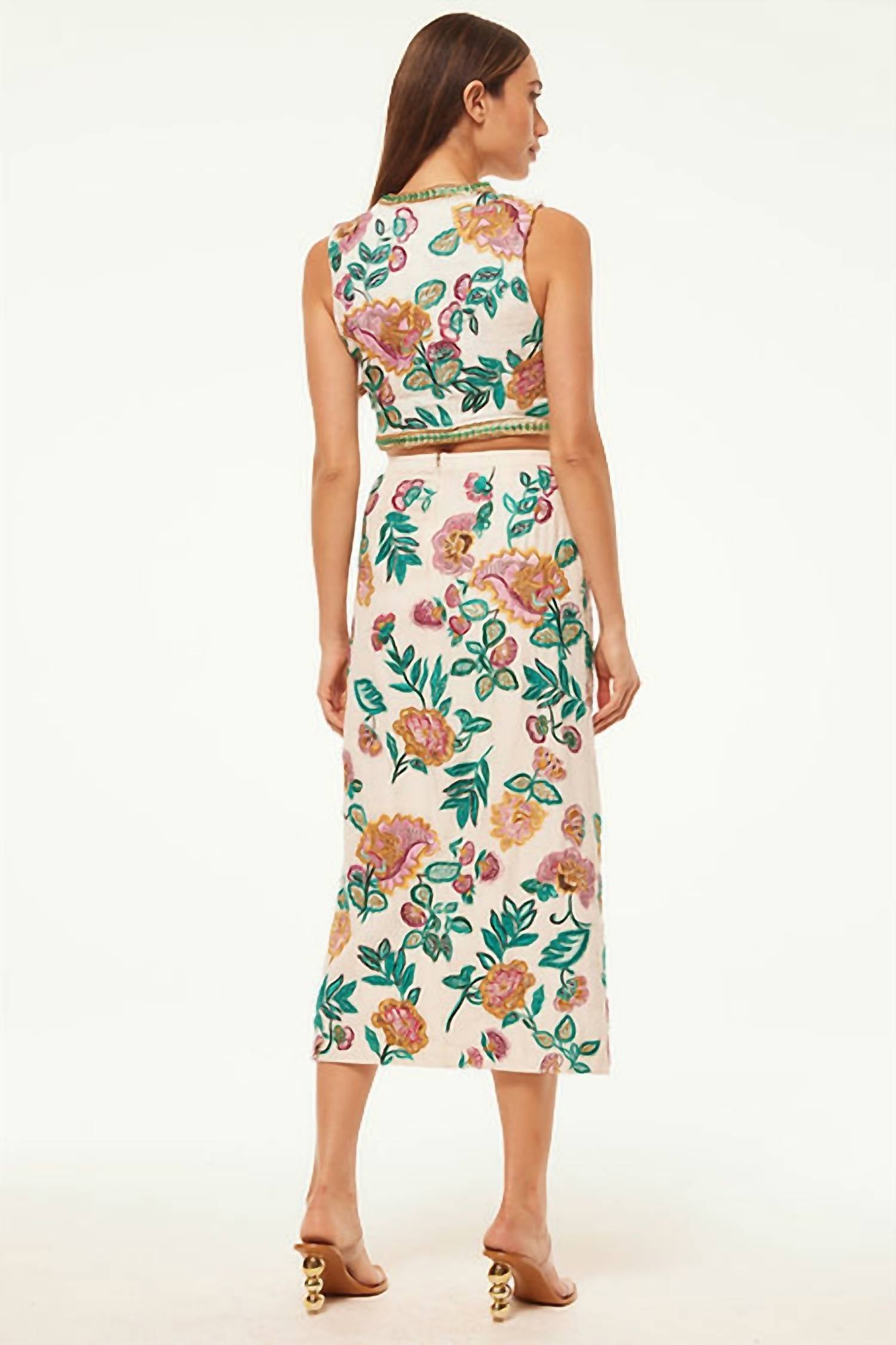 That extra layering piece you didn't know you needed! Make a statement in this intricately hand-beaded vest, featuring detailed floral embellishment that adds depth and texture to its stretch fabric design. A deep V-neckline and front hook closure create a sleek, polished silhouette that can be paired with a coordinating skirt for a standout look or dressed down with denim for effortless style. Dry clean; 95% polyester, 5% spandex.
