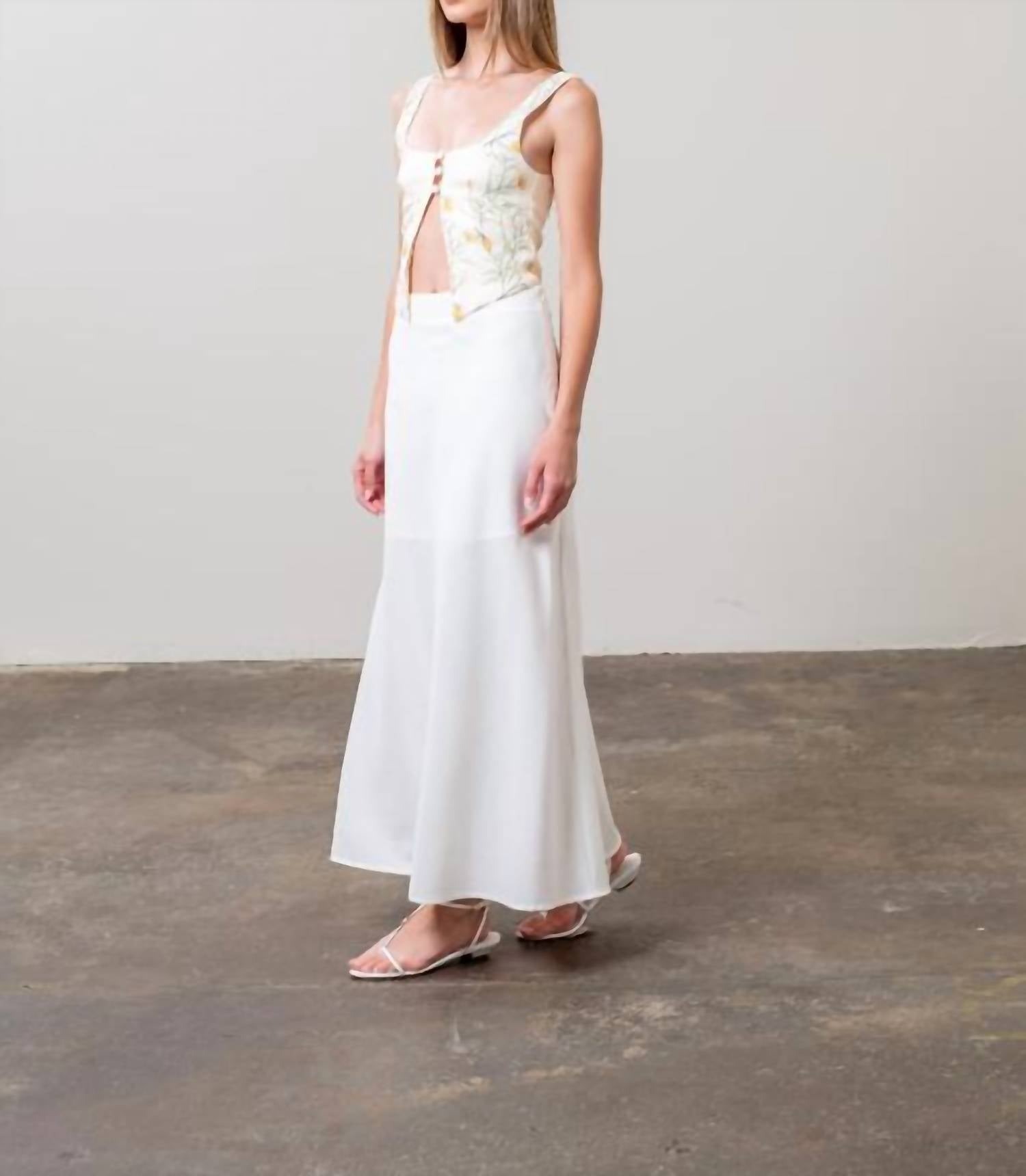 That extra layering piece you didn't know you needed! Step into summer style with the Sadie Floral Print Vest Top by Moon River, an ideal piece for your next beach getaway. This sleeveless vest in a delightful cream hue features a vibrant floral pattern that adds a pop of color to your ensemble. Made from an 80% viscose and 20% linen blend, with a 100% polyester lining for added comfort. Care: Hand wash and line dry. Perfect for embracing a boho chic look on a sunny day.