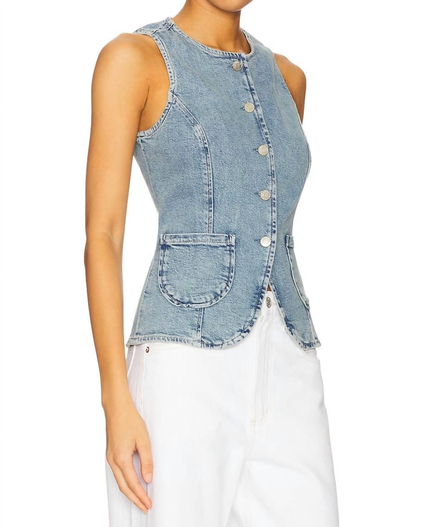 A vest so versatile you can mix and match it with almost any outfit and it will feel brand new every time. Discover the Portola Crewneck Vest by Rails, a striking addition to your wardrobe in the stunning Blue Eyed Girl color. This sleeveless vest is meticulously crafted from 100% cotton, providing a sleek, fitted silhouette perfect for spring streetwear. It features convenient patch pockets and a classic button closure, exemplifying both functionality and style. Care is a breeze with machine wash cold instructions and tumble dry low, ensuring your vest retains its timeless elegance.