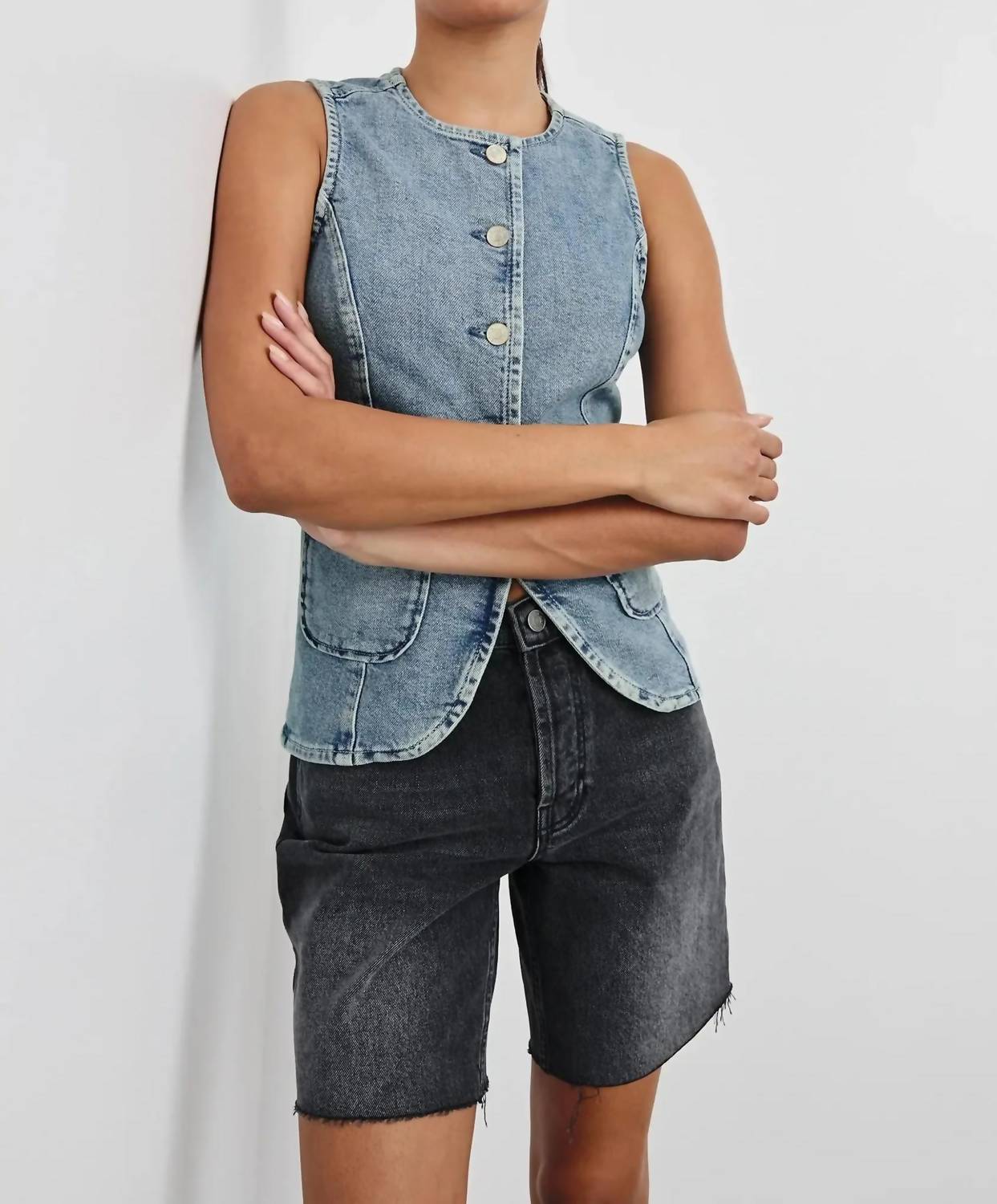 That extra layering piece you didn't know you needed! Meet the Rails Portola Vest, a stylish piece designed for double-takes in a charming "Blue Eyed Girl" hue. This sleeveless vest boasts a 100% cotton composition and a flattering, fitted silhouette. Made with front button closures and lower patch pockets, it offers both practicality and timeless appeal. Imported and machine washable, this vest measures 24" in front body length and is crafted for casual spring outings.