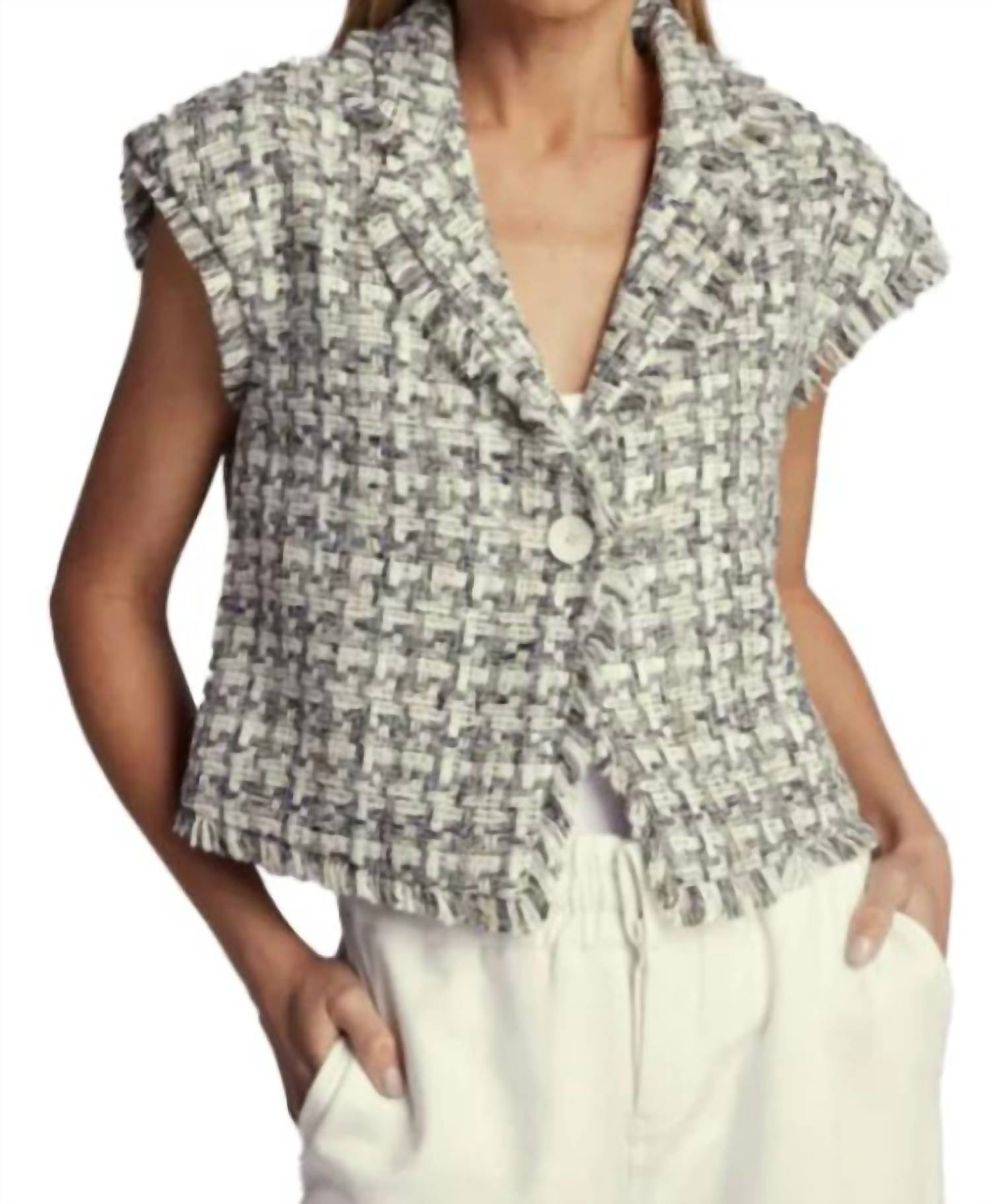 A vest so versatile you can mix and match it with almost any outfit and it will feel brand new every time. Made in our Spice Bouclé with an elevated, textured hand feel Sleeveless vest designed for layering or wearing on its own Angled front closure finished with a statement button Modern, versatile silhouette for effortless styling