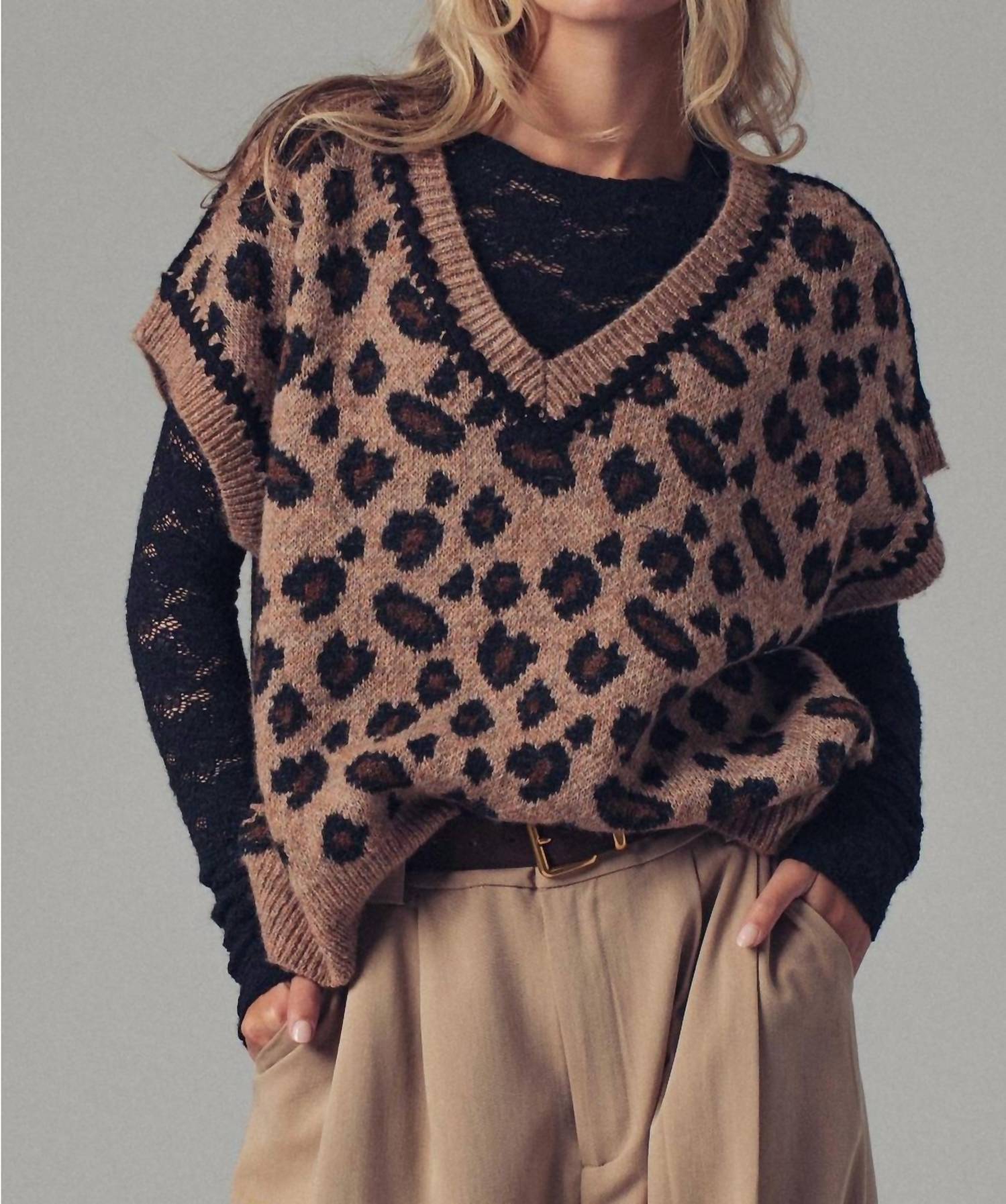 That extra layering piece you didn't know you needed! Elevate your casual wardrobe with the Clementine Vest by Urban Daizy, a chic addition featuring a playful leopard print. This women's brown knit vest is perfect for layering thanks to its V-neck and animal pattern design. With a convenient pull-on closure, it's easy to style for any casual outing. Whether you're dressing up for game day or pairing it with jeans, this vest brings a touch of playful flair to your look.