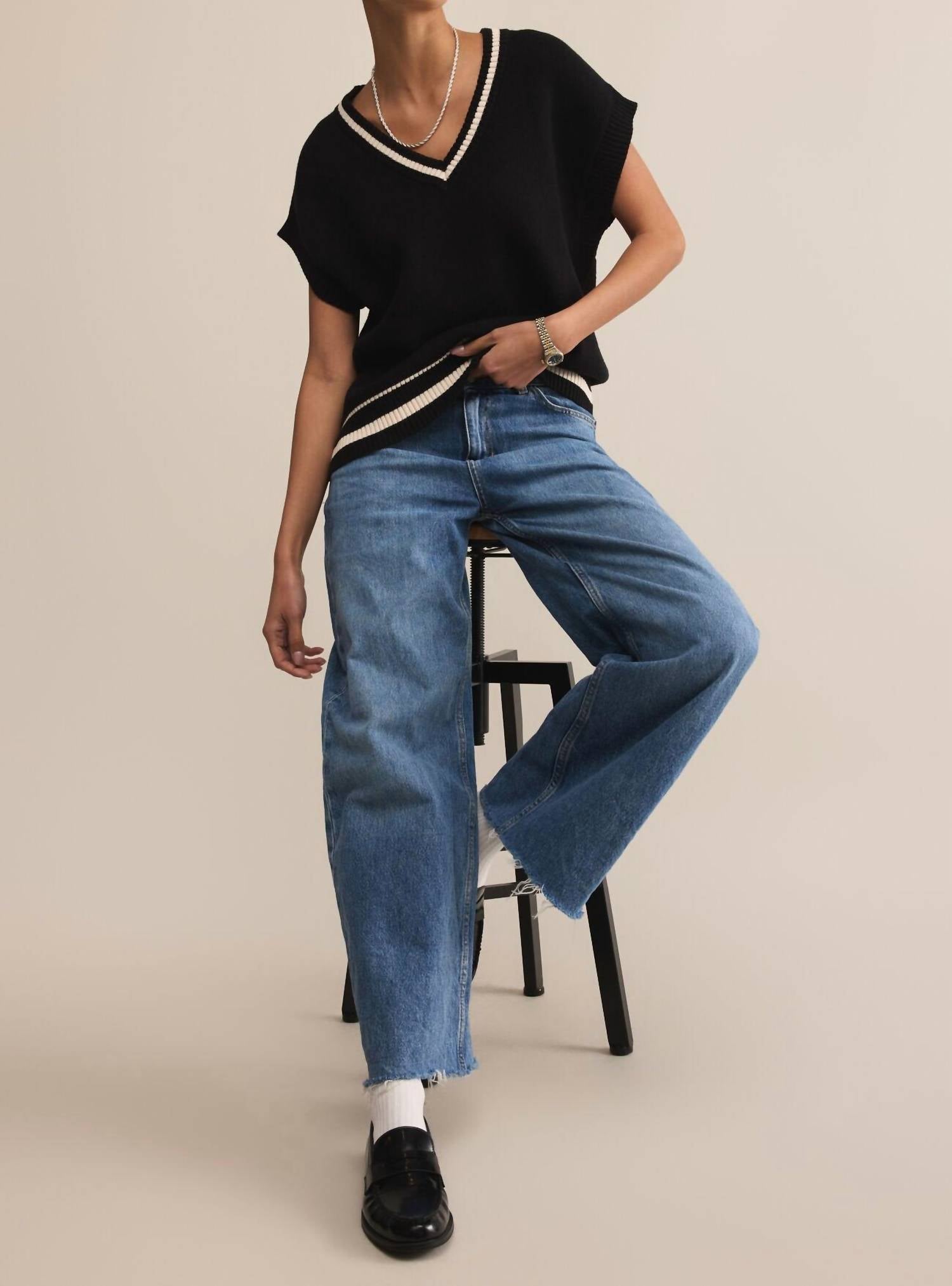 A vest so versatile you can mix and match it with almost any outfit and it will feel brand new every time. Elevate your holiday party look with the Fletcher Sweater Vest by Z Supply, a preppy piece in versatile black. This Varsity-inspired vest features short sleeves and a flattering V-neck, perfect for layering. Crafted in a lush Birdseye Jacquard with a nylon blend composition of 50% nylon, 28% polyester, and 22% nylon, this vest ensures both warmth and style. Closure: Pull on. Care: Hand wash cold, reshape, and lay flat to dry.