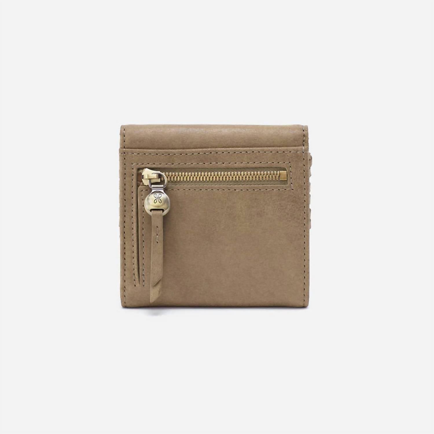 Upgrade your accessories with this chic wallet. Its standout appearance highlights your personal style, while its compartments offer efficient storage for your financial essentials. This compact bifold wallet is designed with a hidden magnetic closure for a sleek, secure finish. Perfectly sized to pair with small crossbodies, it features a sandalwood lining with a bill slot, five credit card slots, and an ID window inside, plus an exterior zip pocket for added convenience. Detailed with brushed antique brass hardware, it measures 4" W x 3.5" H x 0.5" D—ideal for carrying just the essentials in style.