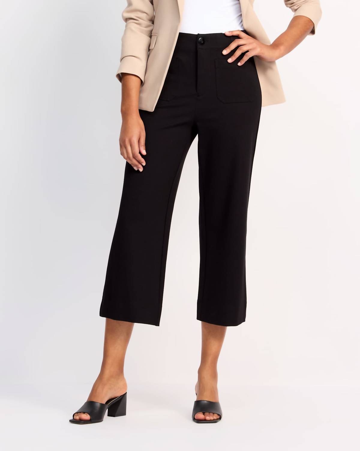 Elevate your spring wardrobe with the High Rise Fly Front Capri Pant by TRIBAL, the perfect choice for workwear or a chic dinner party. Featuring a classic fit and wide-leg style, these capris are crafted from a comfortable nylon blend (74% Rayon, 22% Nylon, 4% Spandex). The high-rise design is complete with a button closure and includes pockets for added functionality. Care is made easy with a machine wash on a delicate cycle.