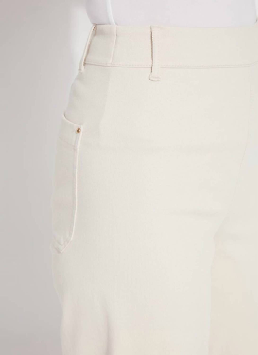 Experience the Erin High Waist Wide Leg Denim Pant by Lysse, crafted from innovative 4-way stretch Knit Denim for unmatched comfort and style. These high-waisted, wide-leg jeans feature a concealed patented waistband and are designed with a raw-edge hem and a cropped 28" inseam, making them ideal for pairing with ankle booties. Made in a versatile Oat hue, their pull-on closure and solid pattern ensure a sleek, modern look. Composition: 95% Cotton, 5% Spandex. Care: Machine wash and line dry.