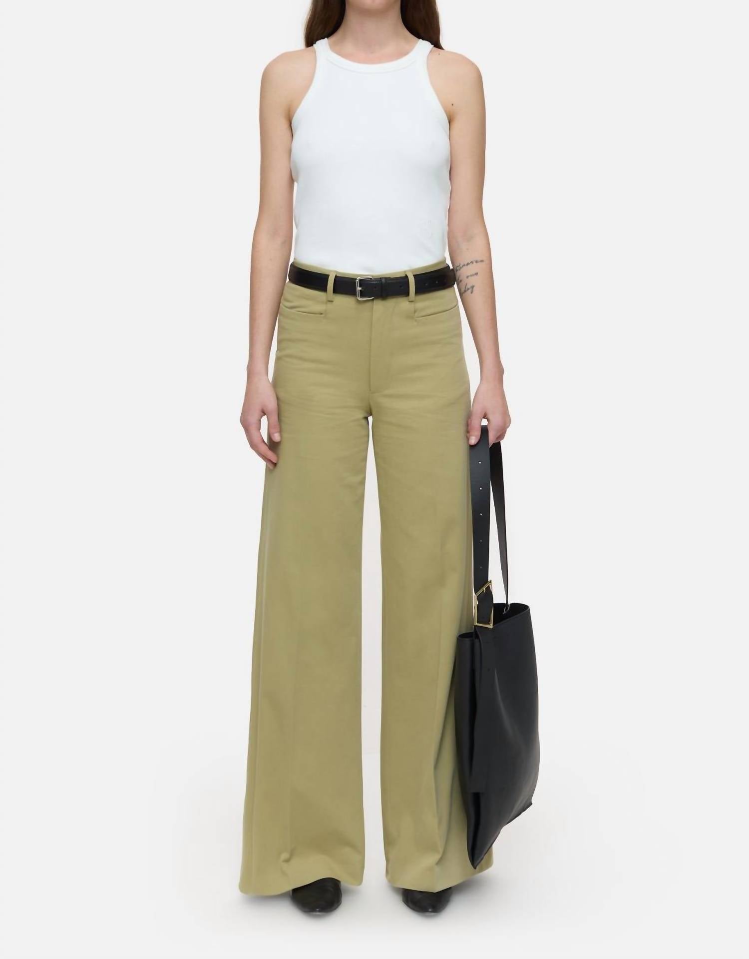 Discover the CLOSED Veola Wide Leg Trousers, perfect for the spring season in a chic Sage Tea hue. These trousers feature a mid-rise waist and a wide leg style, crafted from 100% cotton for comfort and breathability. They include practical front and piped back pockets, and a convenient pull-on closure. Designed for easy care, simply machine wash and lay flat to dry.