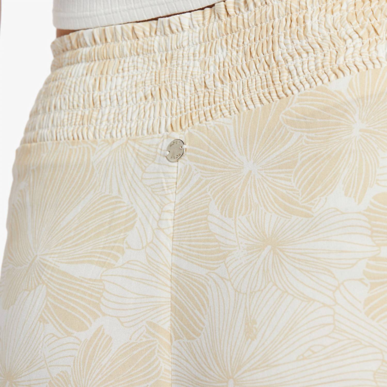 Introducing the Tropical Rhythm Beachy Pants by ROXY, a boho-chic masterpiece perfect for a beach day. Crafted from floral-patterned viscose, these wide-leg pants feature a relaxed fit and a mid-rise smocked waistband enhanced with tasseled drawcords. Echoing the carefree spirit of summer, they boast side pockets and a tie closure for added convenience.