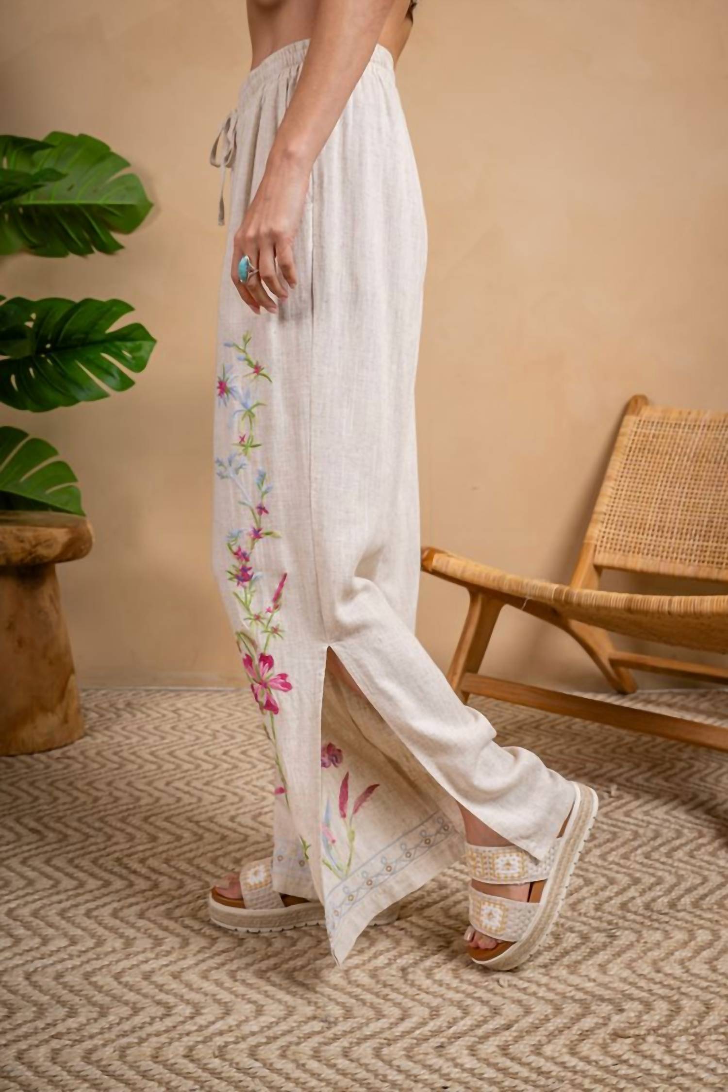 Effortlessly stylish and perfect for summer, PAPARAZZI's Women's Embroidered Split Pants in oatmeal bring a chic floral pattern to life. These wide-leg streetwear pants are designed for a classic fit with a convenient pull-on closure and pockets for added functionality. Ideal for vacation wear, they blend comfort with a trendy edge. Care instructions are not specified, ensuring you adapt maintenance to suit your needs.