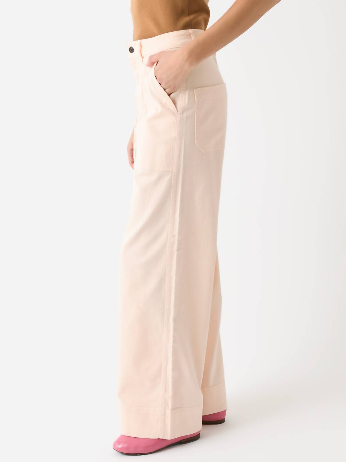 High rise. Button, zip-fly closure. Belt loops. Patch pockets. Wide leg silhouette. 100% cotton. Classic fit. Model is wearing size 38 pant. Model's measurements: height: 5'10.5" | bust: 32B | waist: 25" | hips: 36" | dress size: 0-2 (US).