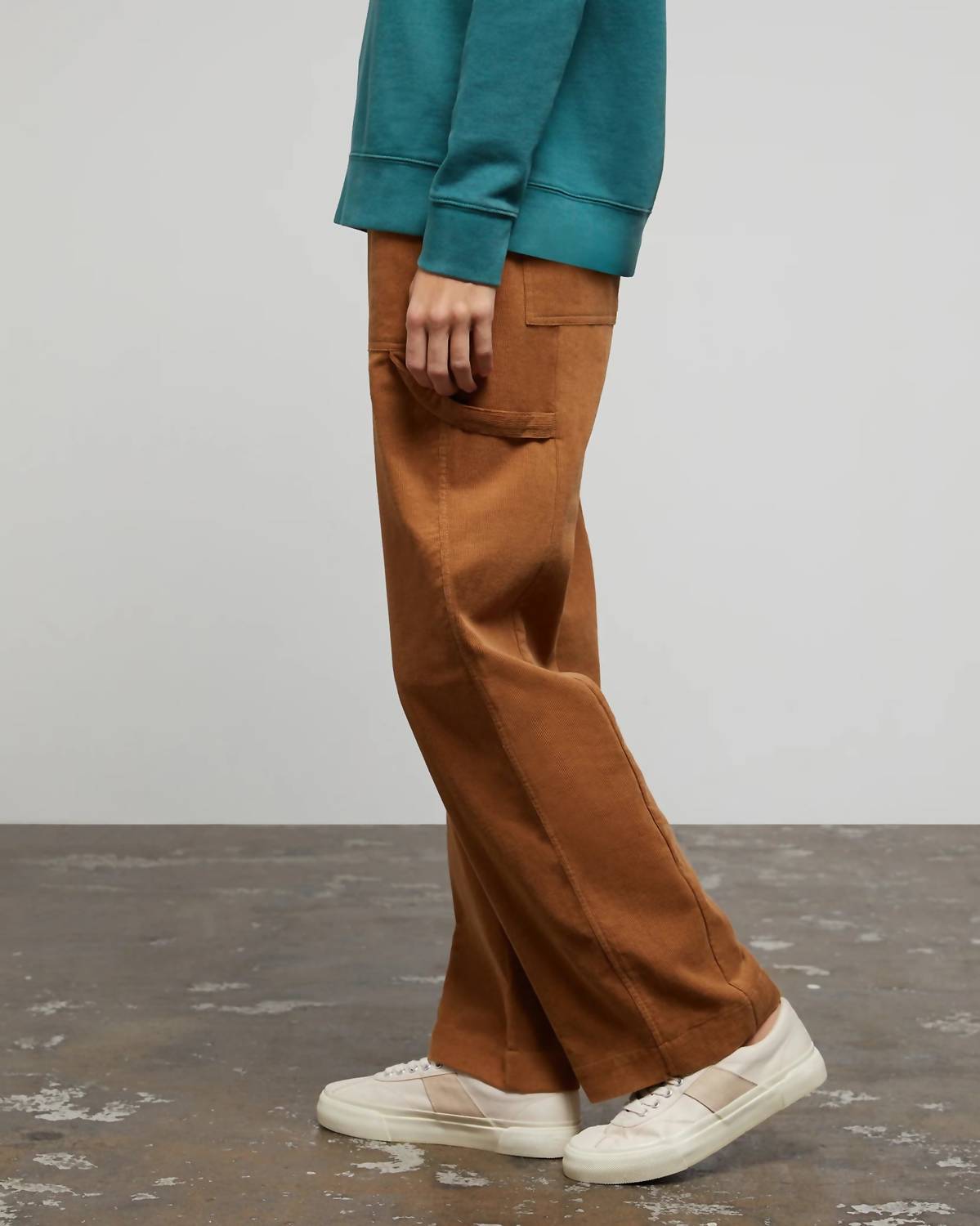 FINAL SALE. Made from structured wide-wale fabric, our Corduroy Carpenter Pant is cut wide and detailed with a shank-button fly, patch pockets — front and back—as well as a utility strap at each leg. Shank-button fly. Wide leg silhouette. Patch pockets. Utility strap details. Inseam: 28 ¾”. Model measurements: Height 5'9.5" Bust 34" Waist 24" Hips 35". Model wears size 25.Care instructions: Machine wash cold. Do not bleach. Hang to dry. Iron cool.