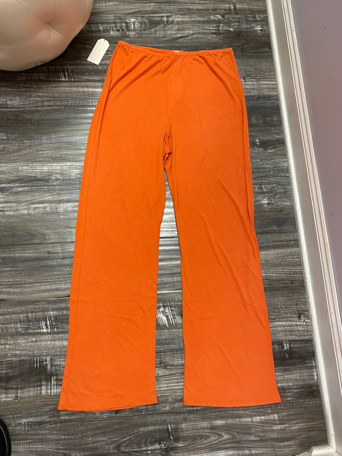 Introducing the Women's Wide Leg Pant by DONNI., crafted for effortless autumn style in a striking orange hue. These solid wide-leg pants boast a relaxed fit with a mid-rise waist for ultimate comfort and ease. Designed without pockets, they feature a convenient pull-on closure. Perfect for vacation or Thanksgiving gatherings, these pants embody a maximalist trend suitable for various occasions.