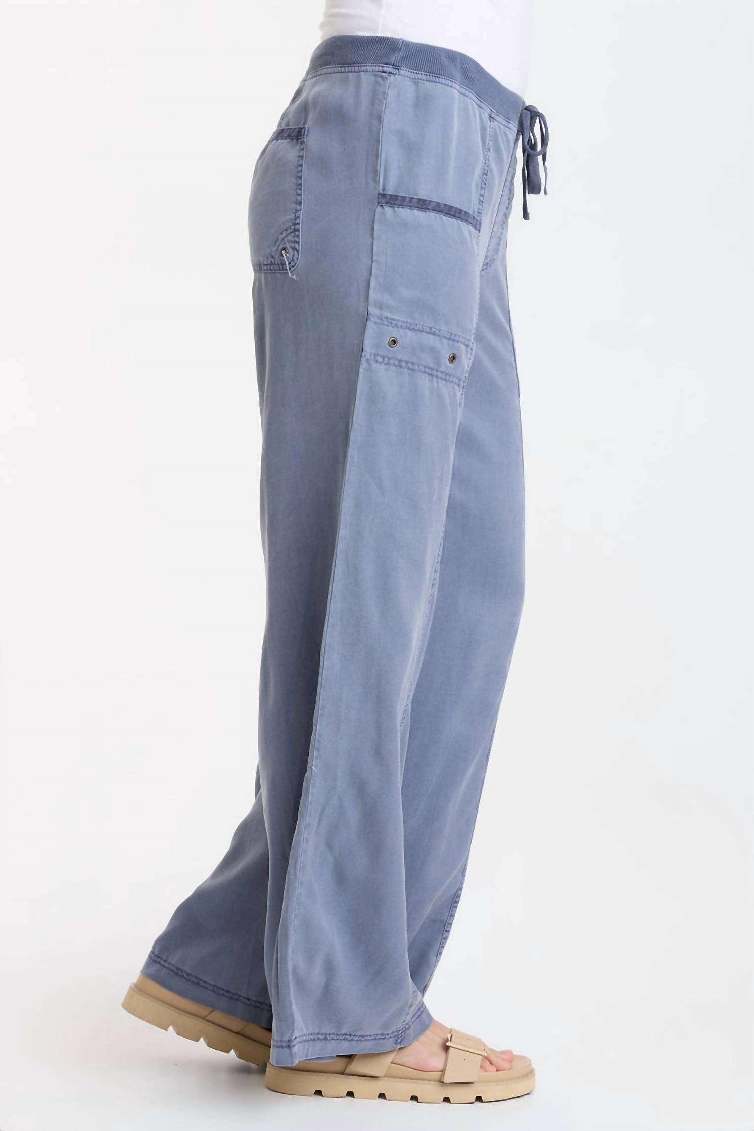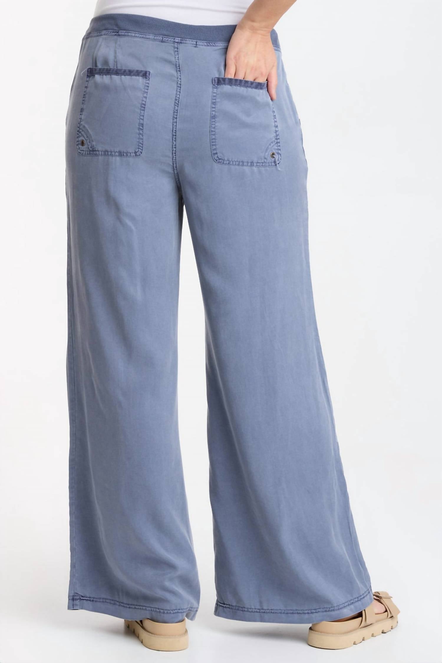 Introducing the XCVI Holm Wide Leg Pant, a relaxed fit essential in a saturated stone blue hue. These pants are crafted from soft twill, made of 100% Tencel, with a comfortable 2x1 rib waistband composed of 48% Modal, 48% Cotton, and 4% Spandex. Designed with a convenient pull-on closure, these pants feature a drawstring waistband for a customized fit and a mid-rise with an inseam of approximately 31 inches. Perfect for spring workwear or a vacation wardrobe, this machine-washable pant includes functional pockets for added practicality.
