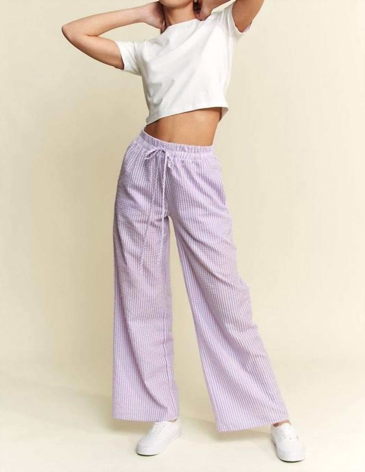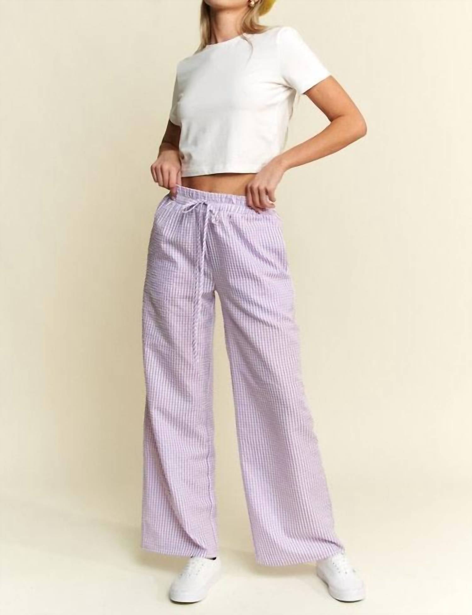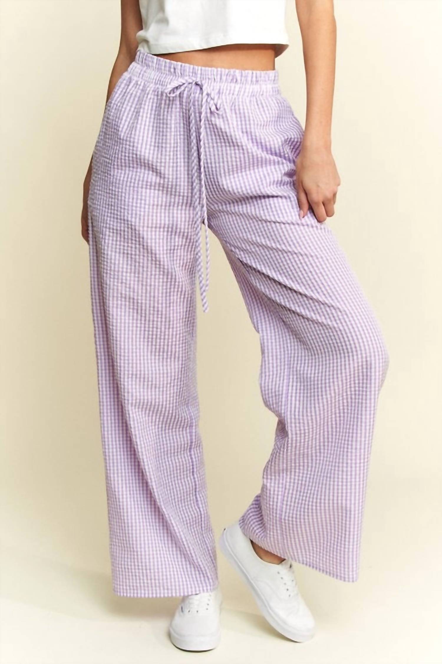 Crafted from Cotton. Feature a wide leg and relaxed fit, with a high-rise elastic waistband and decorative waist tie for a flattering silhouette. Designed with side pockets and a pull-on closure, making them both stylish and functional. Proudly made in US. Easy to care for with machine washing, offering a fashionable yet effortless approach to your wardrobe.