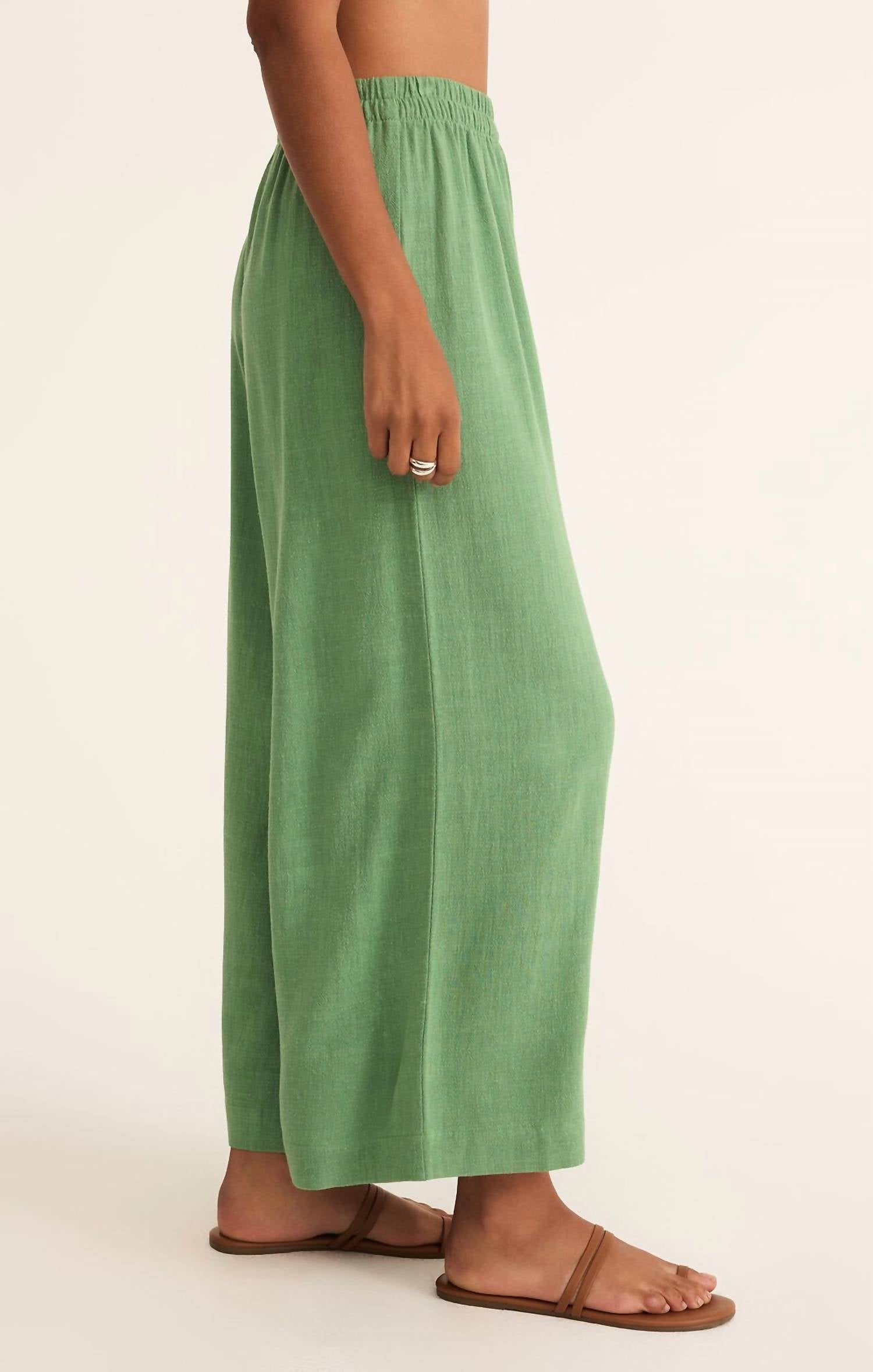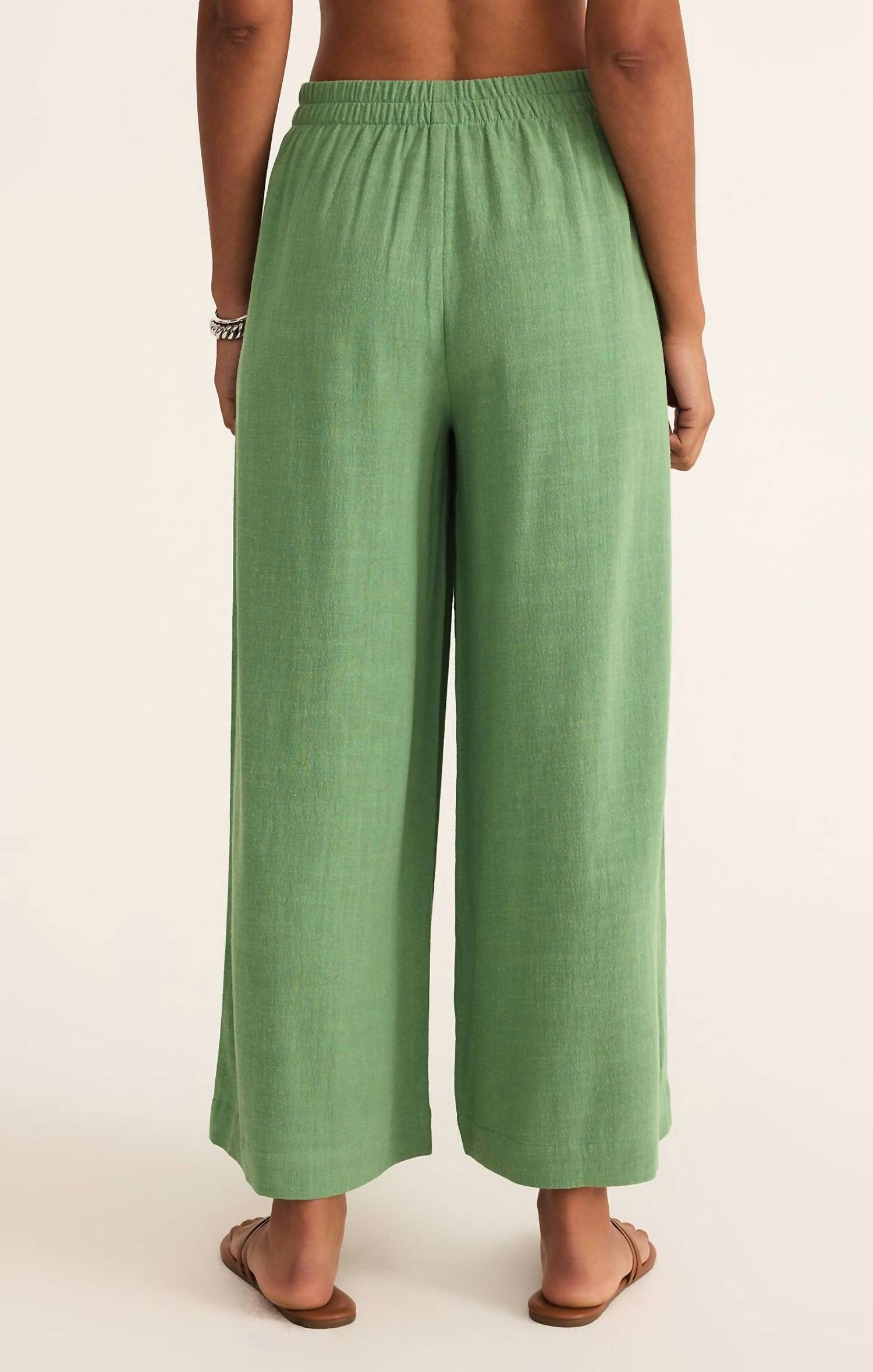 Elevate your wardrobe with the Z SUPPLY Scout Linen Rayon Pant in a stylish Lawn shade, perfect for summer occasions. These wide-leg pants boast a high rise and ankle-length design crafted from an 86% Rayon, 14% Linen blend for a midweight and luxuriously soft feel. The regular fit and straight leg style ensure a flattering silhouette, while the elastic waistband offers a comfortable and secure pull-on closure. Care is a breeze with machine wash and line dry instructions, making them ideal for travel and casual outings.
