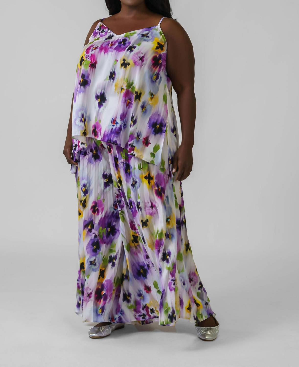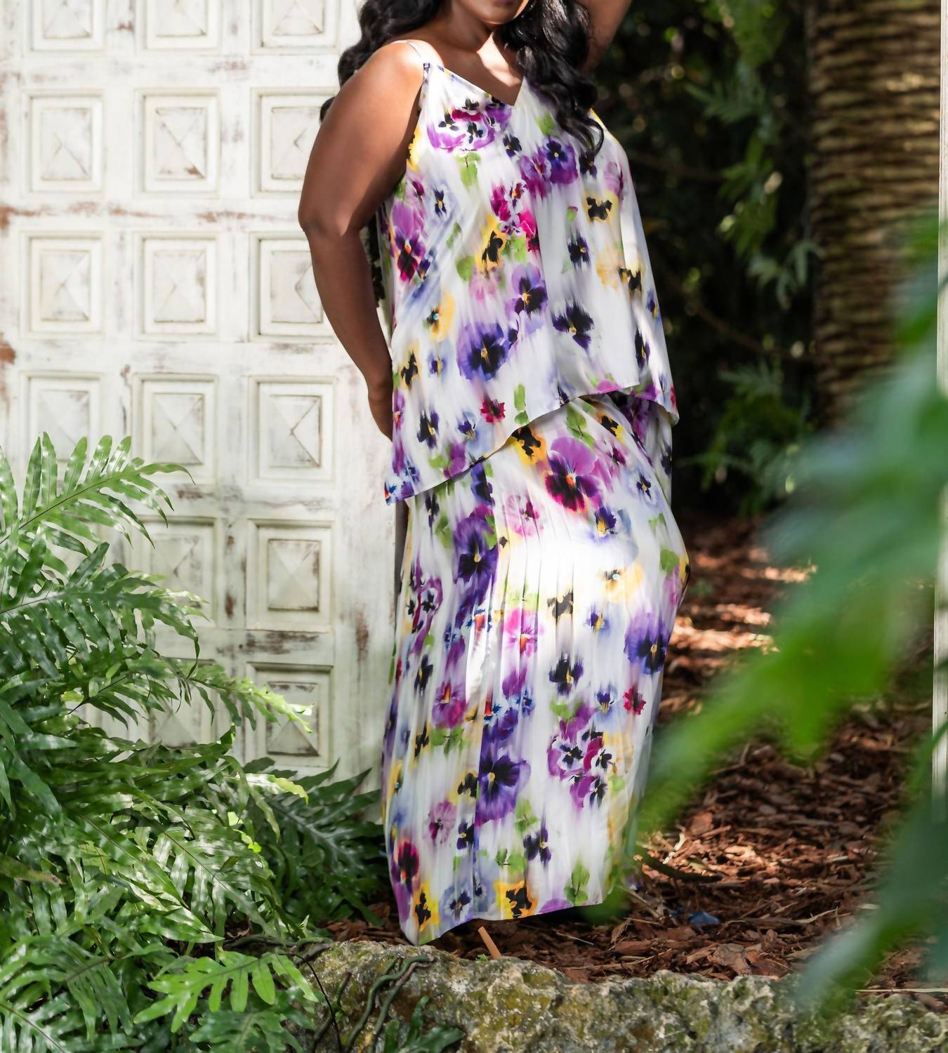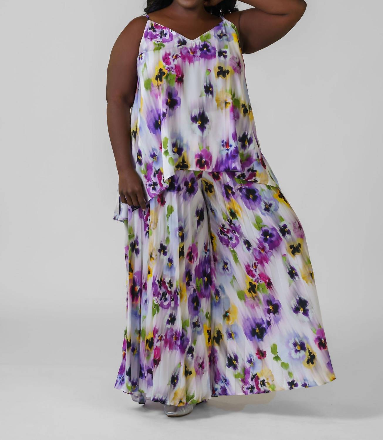 Elevate your wardrobe with the Pansy Relaxed Wide Leg Trouser by Mat Fashion, designed for plus-size women who love vibrant style. These high-rise pants feature a pull-on closure with a super expandable elastic waistband, ensuring comfort and ease. Made from 98% Polyester, 2% Viscose, they boast a striking floral pattern that captures the essence of boho chic, perfect for a spring holiday party or Easter celebration. Practicality meets style with roomy tiered wide legs and pockets, all machine washable for your convenience.