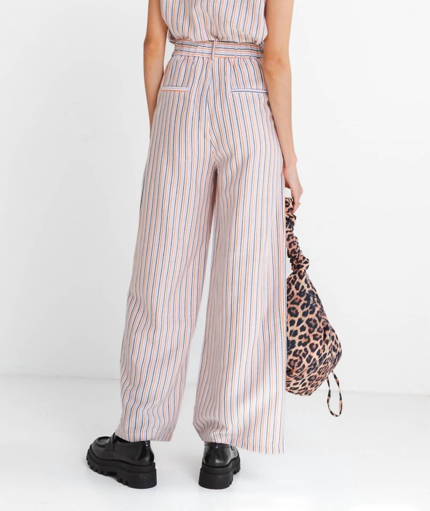 Discover the Nephelie Wide Leg Pants by FRNCH, designed to marry comfort with style for women. These pull-on pants are crafted from a breathable viscose blend, showcasing a sophisticated stripe pattern and featuring convenient pockets. Worn in a sleek straight-leg style with a mid-rise waist, these pants offer a slim fit that's perfect for minimalist spring trends. Easy to care for, they are machine washable and can be tumble dried, making them ideal for Thanksgiving dinner parties or casual outings.