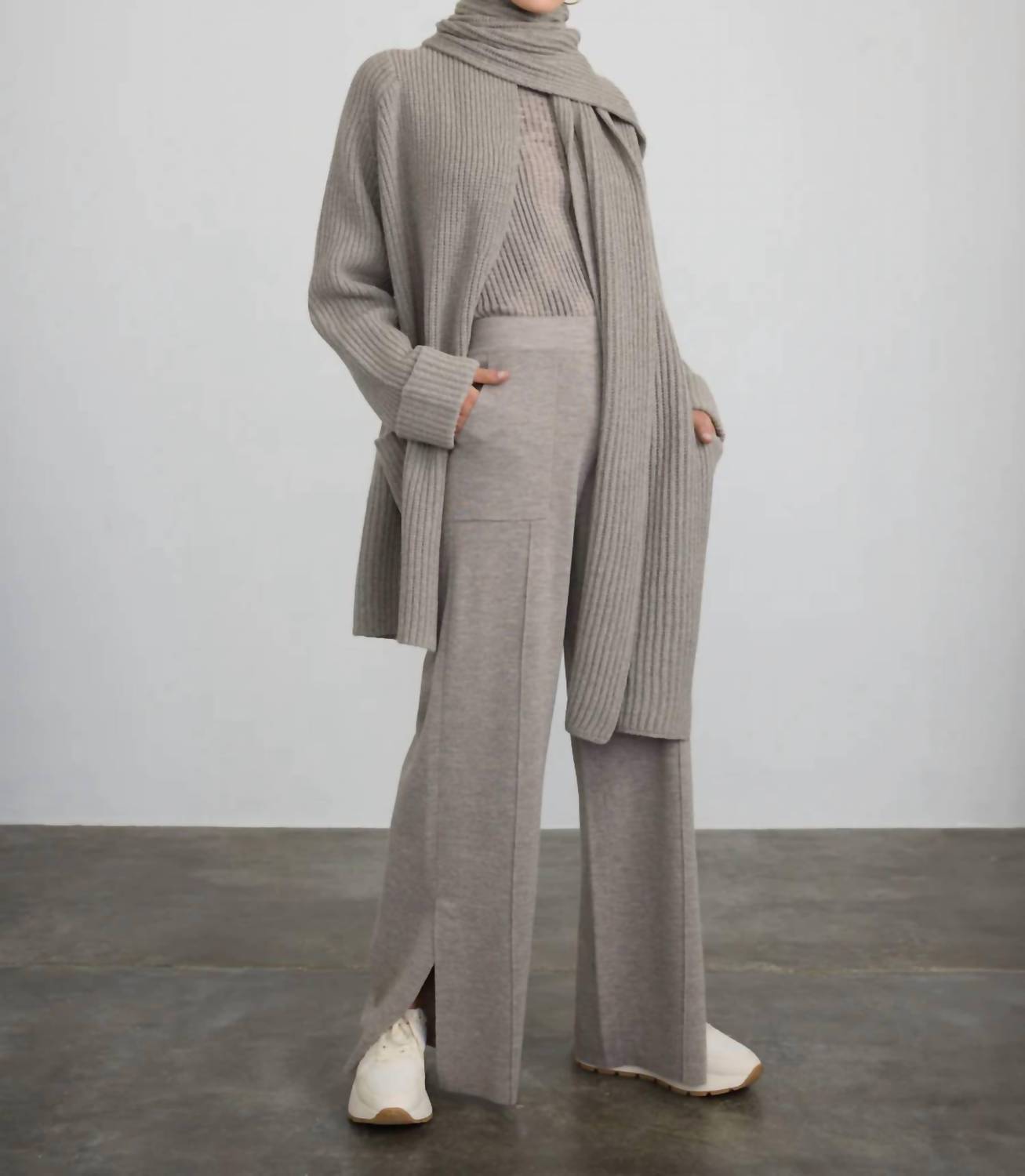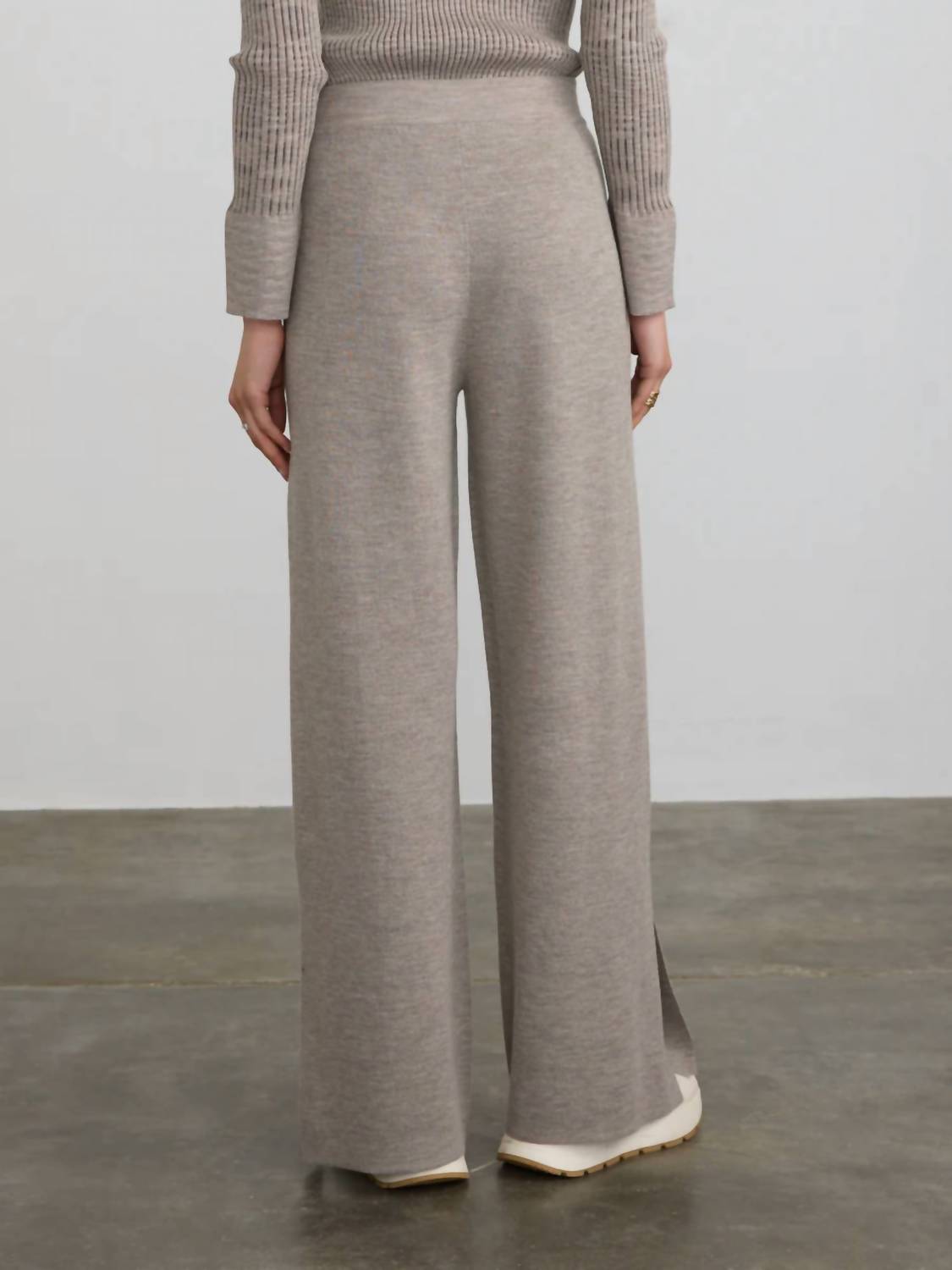 Introducing the Split Hem Pant by Margaret O'Leary, a chic addition to any wardrobe in a classic oat shade. Made from luxurious 100% Merino Wool, these pants boast functional front patch pockets and feature sporty side slits with a relaxed fit and wide leg style. The high-rise pull-on design includes an easy soft elastic waistband and a faux seam at the center leg for a polished look. With an inseam of 29.37 inches and a waist measurement of 13.5 inches taken flat, they are true to size. Care for these elegant trousers by hand washing them cold separately and laying them flat to dry.