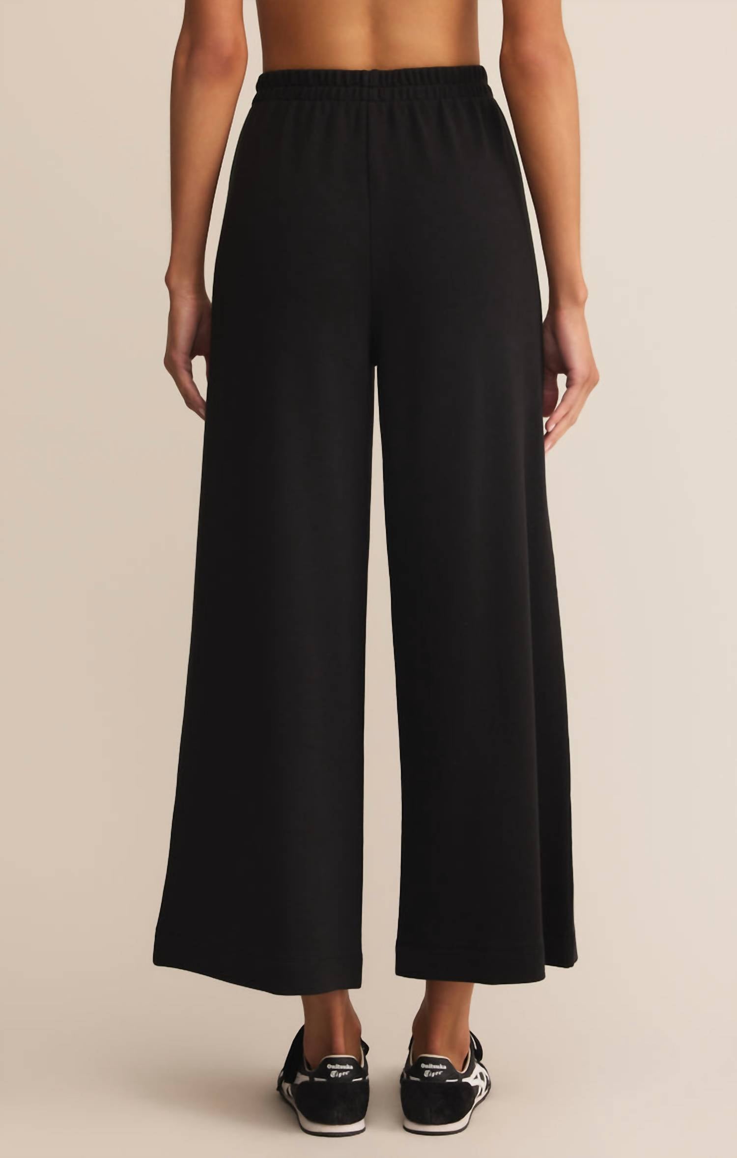 Introducing the Scout Rib Pants by Z Supply, perfect for elevating your off-duty style with a relaxed fit and soft neutral beige tone. These women's wide leg pants feature a cropped length and a comfortable pull-on elastic waistband, ideal for pairing with sneakers, slides, or boots. Made from a cotton blend of 66% Cotton, 29% Acrylic, and 5% Spandex, they promise all-day comfort. Care for them easily by machine washing cold and laying flat to dry.