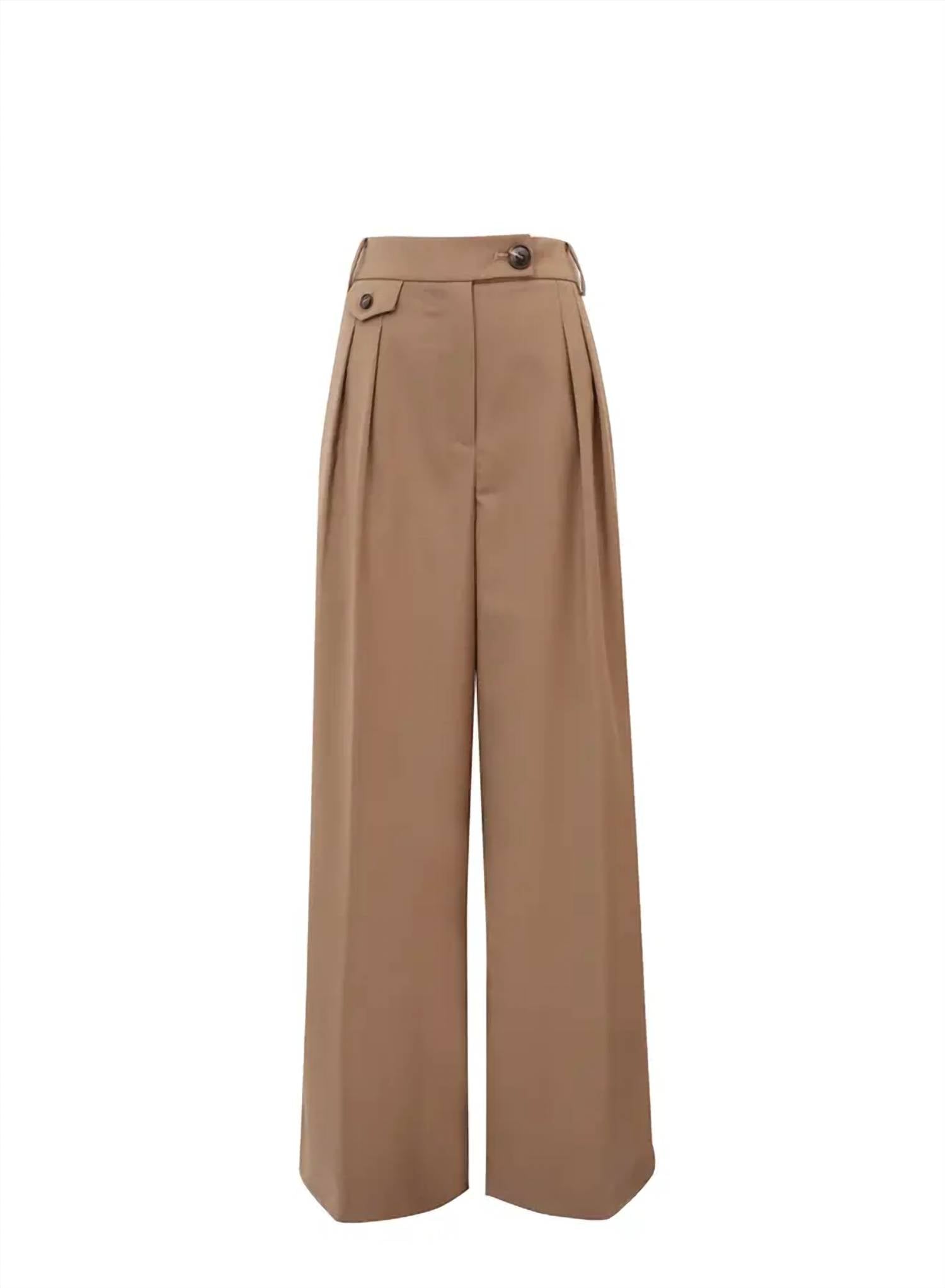 The Lorena Pants by FRNCH are the ultimate choice for a holiday party or stylish spring outings. Crafted from high-quality polyester in a sophisticated camel hue, these wide leg trousers offer both style and comfort. Featuring a classic button closure and convenient pockets, they effortlessly combine practicality with elegance. Designed for women who appreciate a solid, versatile piece, these pants are a must-have addition to any wardrobe.