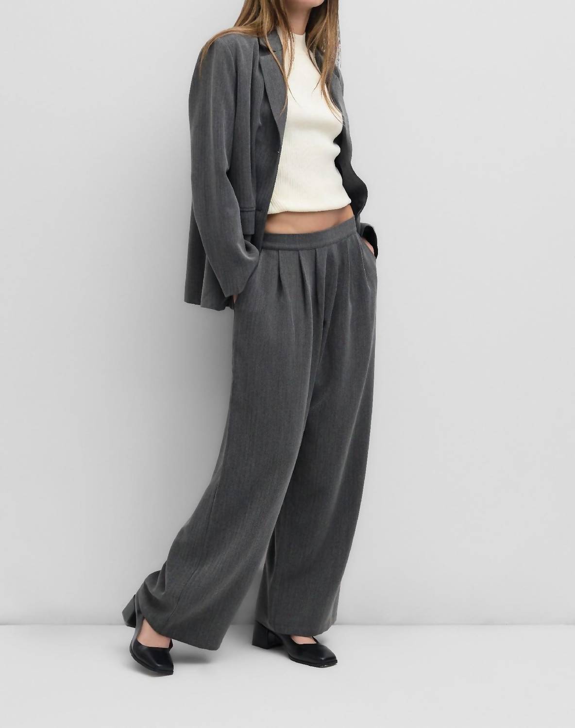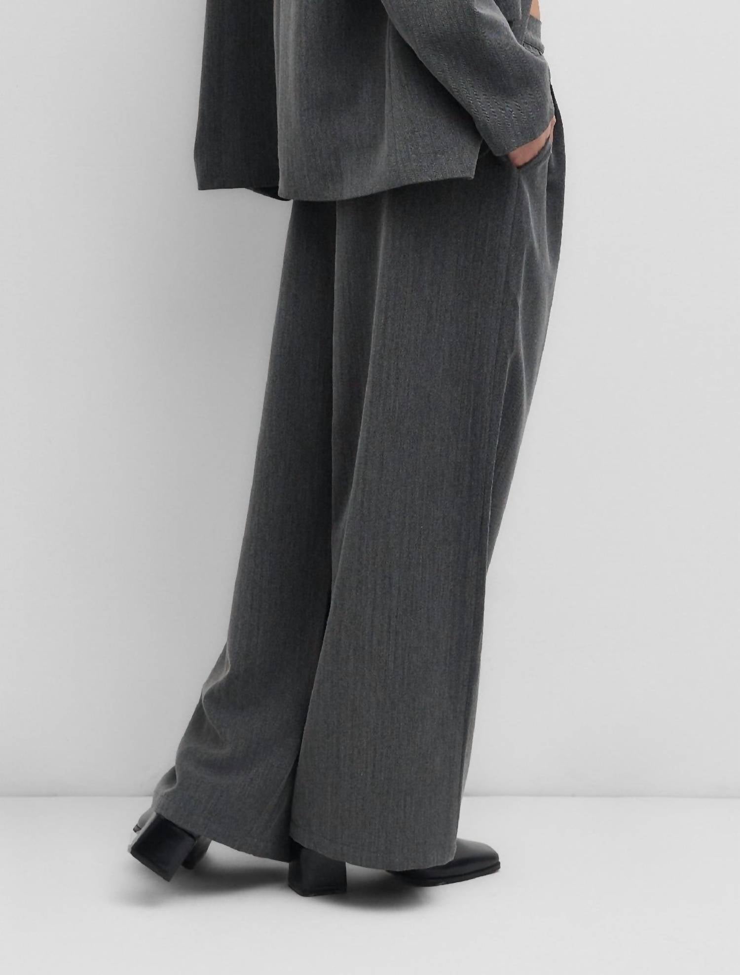 Step into sophistication with the Kerry Wide Leg Pants by MOD REF, an exquisite pair of dark grey trousers perfect for any minimalist wardrobe. These full-length, solid-patterned pants boast a convenient pull-on closure and are thoughtfully designed with an elasticated back waist to enhance comfort. Made for the contemporary woman, these wide-leg trousers feature practical pockets and match beautifully with the Kerry Blazer for a seamless dinner party look. Conveniently machine washable, simply lay flat to dry to maintain their pristine condition.