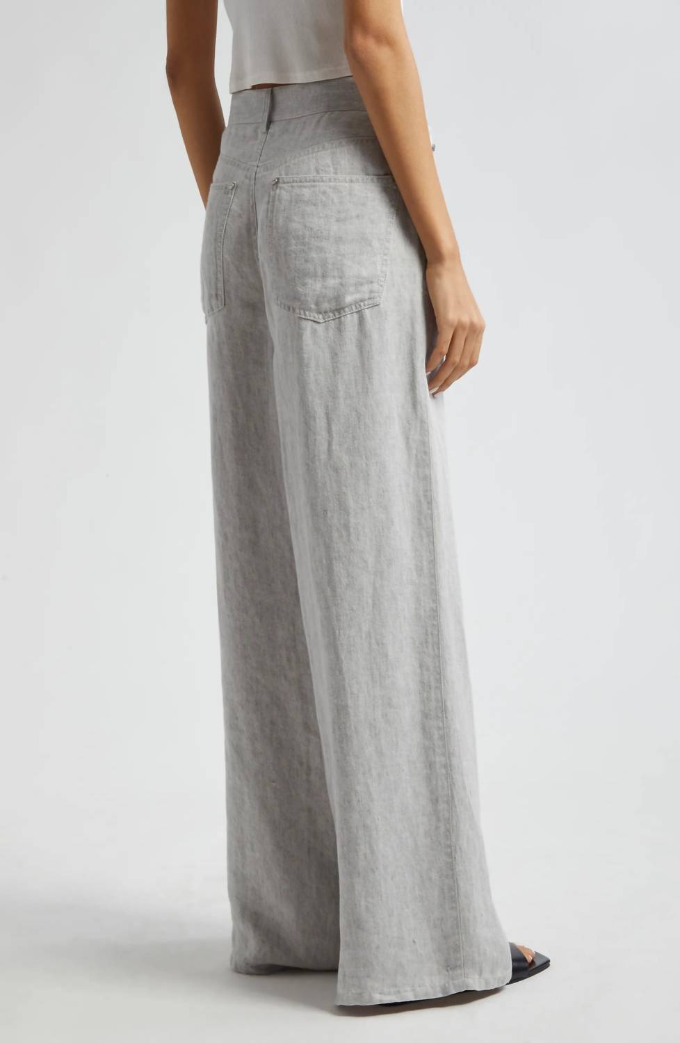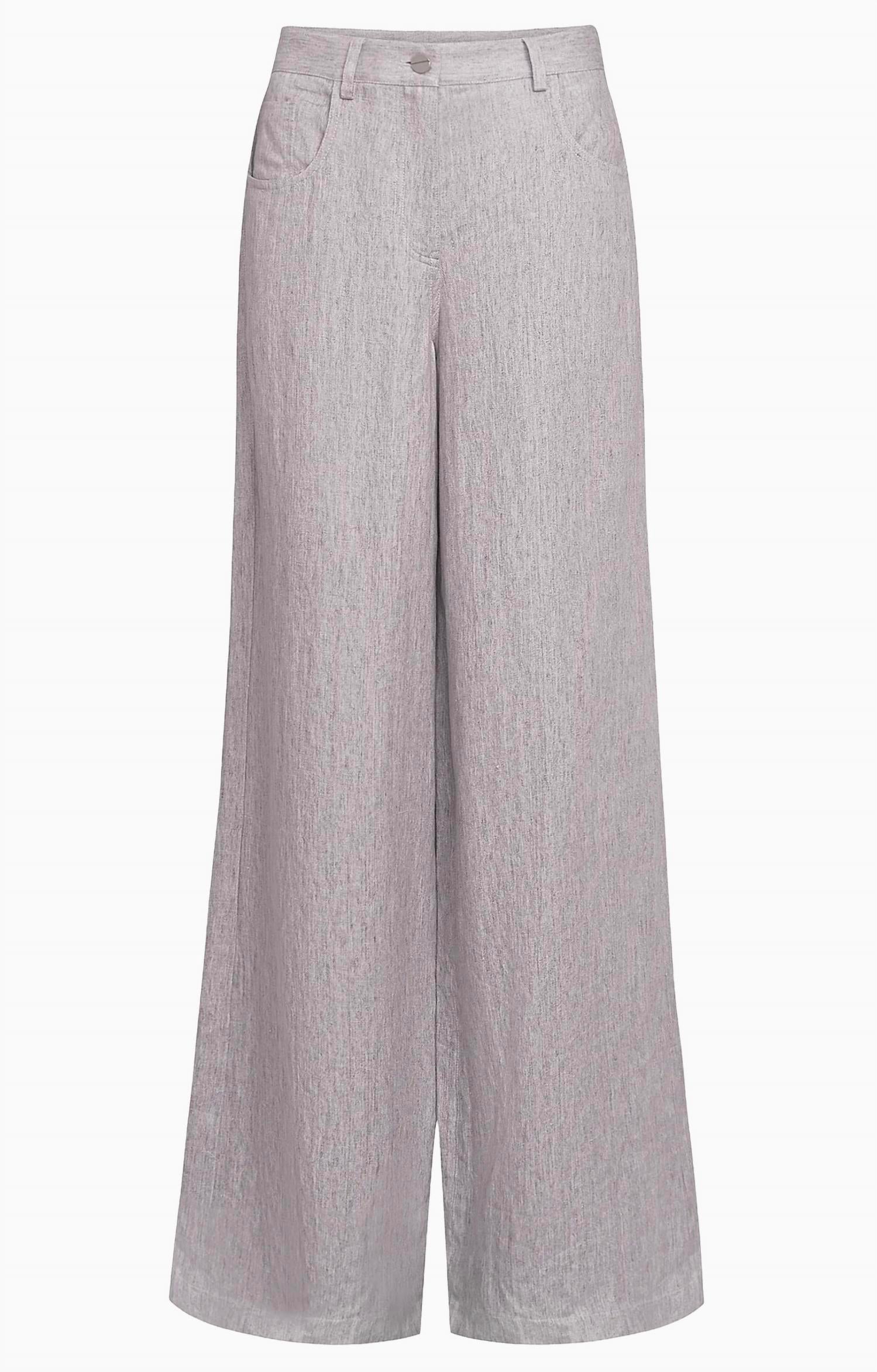 Introducing the Tiny Dancer Wide Leg Pants by TWP, an embodiment of minimalist elegance in a solid gray tone. Crafted entirely from 100% hemp, these pants offer a classic five-pocket styling for practical use. Originating from the USA, they feature a zip fly and a button closure, tailored in a regular fit with a mid-rise waist and a straight leg style. For lasting quality, these pants should be dry cleaned.