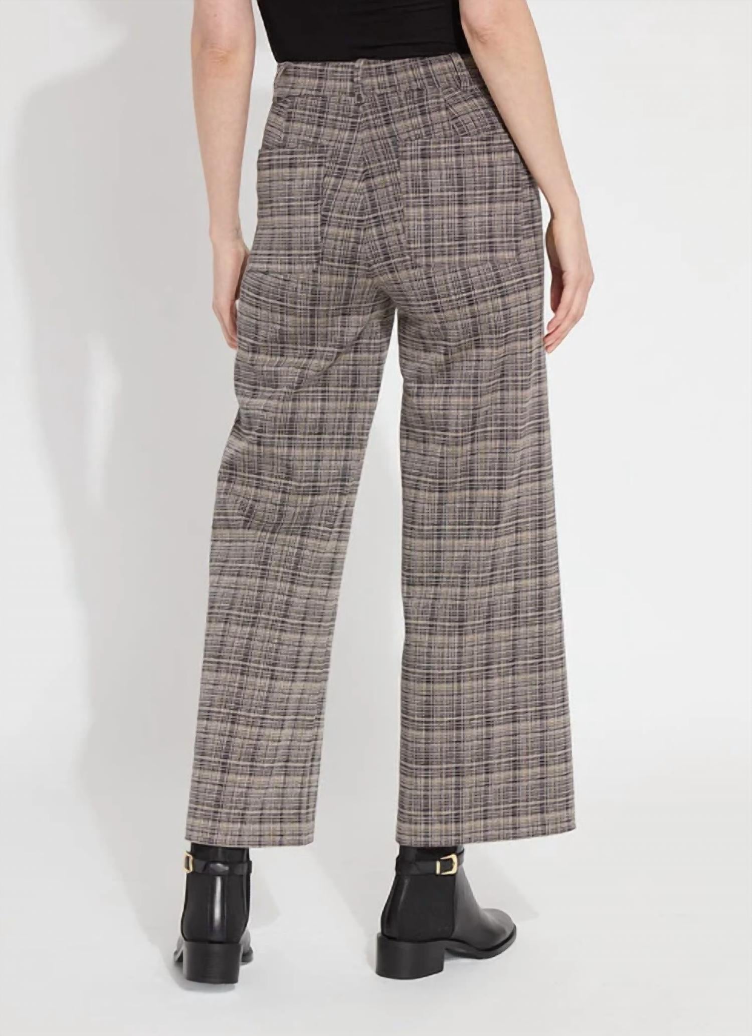 Embrace sophistication with the Erin Wide Leg Ponte Jacquard Pants by Lysse, perfect for a polished spring look. These high-waisted, wide-leg pants in an intriguing plaid pattern feature a pull-on closure and a concealed patented waistband for seamless styling. Fabricated from a 4-way stretch Ponte Jacquard blend of 76% Polyester, 19% Viscose, and 5% Spandex, these pants boast an ankle-length finish with a 28-inch inseam. Offering easy care, they require a hand wash and line dry.