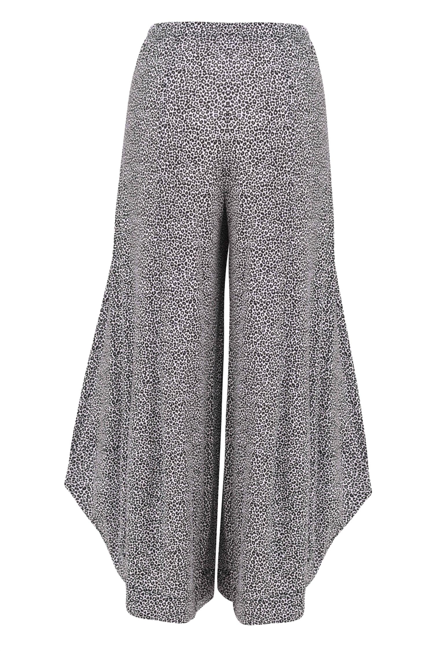 Explore the Women's Leopard Punto Pant by ALEMBIKA, a sophisticated blend of comfort and style. This tapered leg pant is crafted from a soft, breathable viscose blend jersey knit, featuring a chic grey animal pattern. Designed with a relaxed fit and high-rise elasticized waist, it offers ease with a fashionable edge. Made in Israel, it's perfect for travel, and care is simple: machine wash cold and tumble dry low. Composition: 96% viscose 4% elastane.