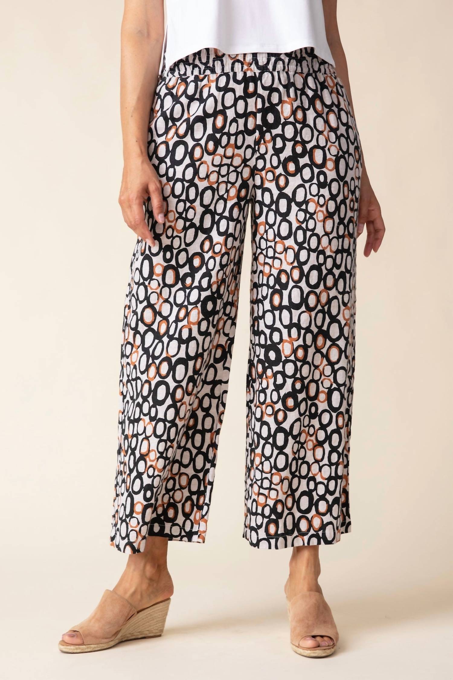 Elevate your wardrobe with the Linen Circle Veranda Pant by Habitat, perfect for both comfort and style in an elegant oatmeal hue. This wide-leg pant features a convenient pull-on closure and on-seam pockets, with an inseam of 27 inches offering a chic ankle length. The exclusive patterned print on a cross-dyed linen/cotton blend adds a unique touch to your look. Composition: 80% Linen, 20% Cotton. Care: Machine wash cold with like colors, only non-chlorine bleach if needed, tumble dry low, warm iron if needed.