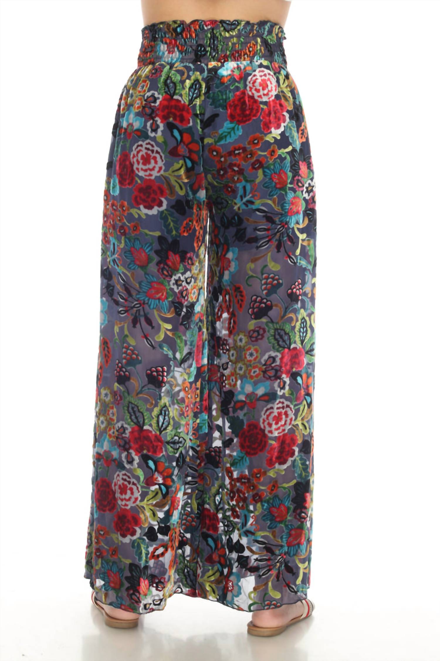 Revitalize your summer wardrobe with the Minto Burnout Rachel Pant by Johnny Was, a boho chic essential in vibrant multi-color. These high-rise, wide-leg pants feature a relaxed fit and a distinctive floral pattern for a carefree beach day look. Material: Crafted from lightweight rayon, this piece offers a fluid drape and easy pull-on closure. Care: Must be dry cleaned.