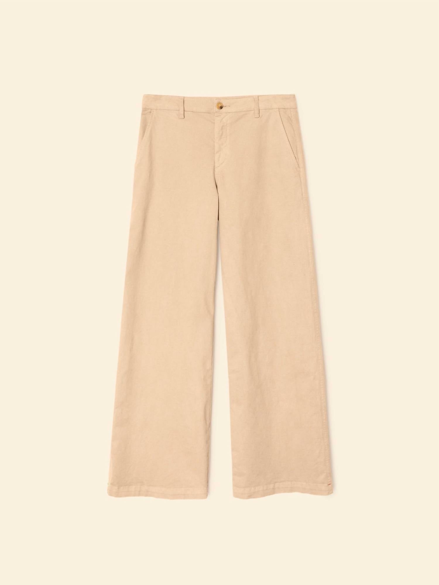 Embrace comfort and style with the Legend Wide Leg Pants by XIRENA, a perfect addition to your spring wardrobe. These versatile chinos feature a relaxed fit with a high-rise waist and a 31-inch inseam. Crafted from a vintage-washed stretch cotton twill blend, composed of 98% Cotton and 2% Elastane, they're proudly made in Los Angeles. With convenient slant and open back pockets, these pants close with a button and zipper fly. Easy to care for, simply machine wash cold on a gentle cycle and tumble dry low for best results. Model wears size Small (5'10").