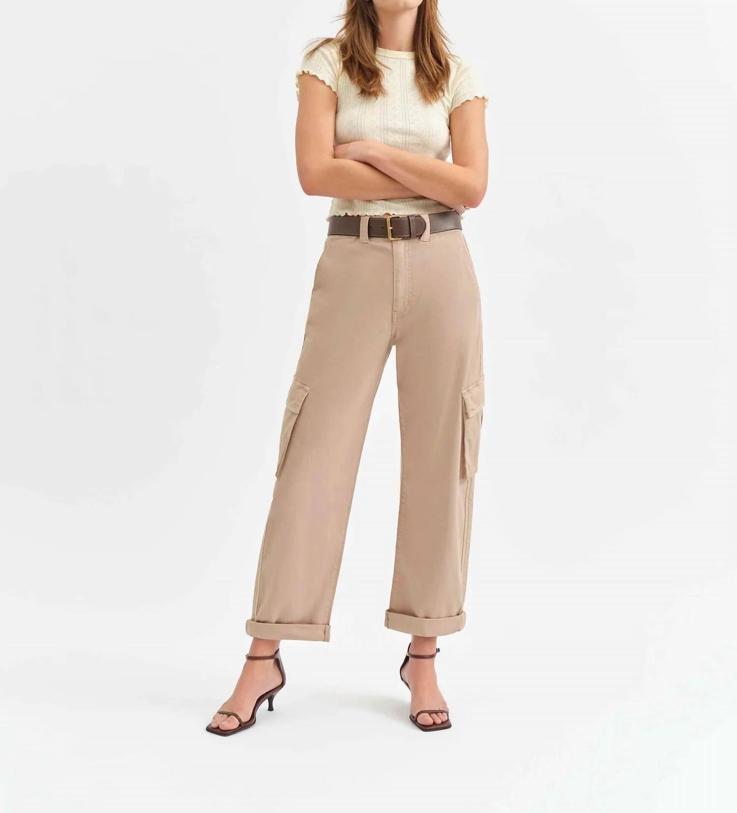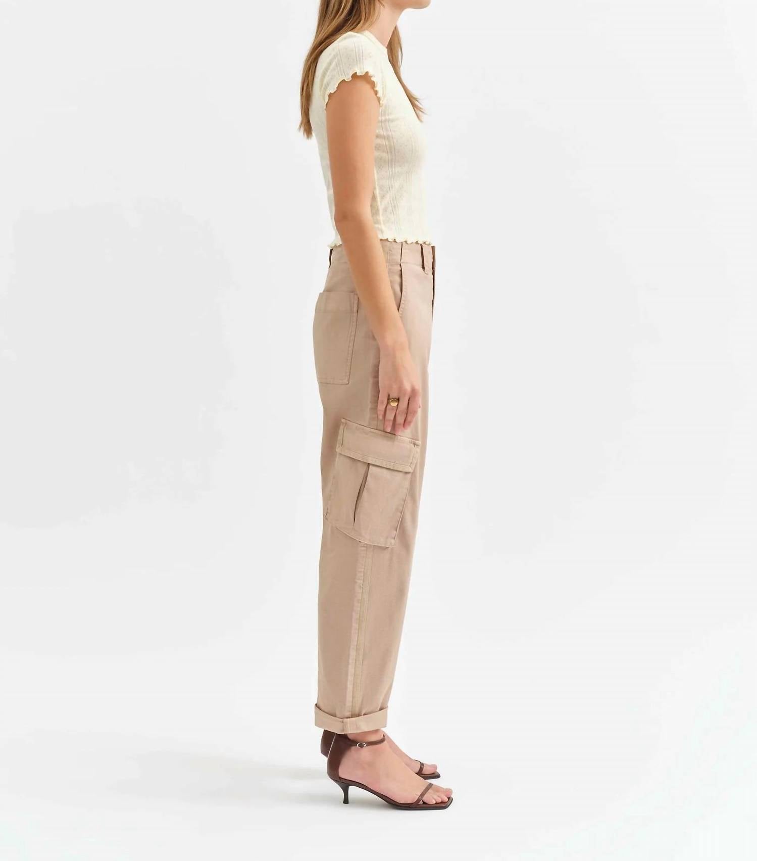 Introducing The Squad Cargo Pant by DAZE, a stylish addition to your wardrobe in earthy Acorn. With a high rise classic fit, these wide-leg pants boast a comfortable 12" rise, a 26 1/2" inseam, and a 17 1/2" leg opening, enhanced by utility details and convenient pockets. Crafted from a solid 99% cotton, 1% spandex blend, this pull-on pant offers the ideal stretch for effortless movement. Perfect for summer streetwear or travel occasions, these cargo pants are machine washable for easy care.