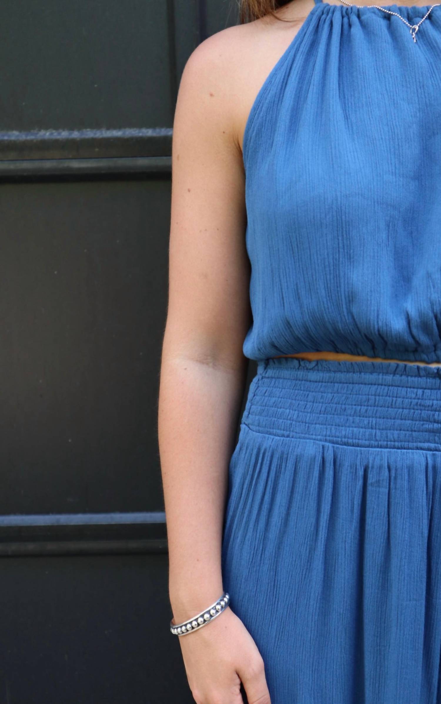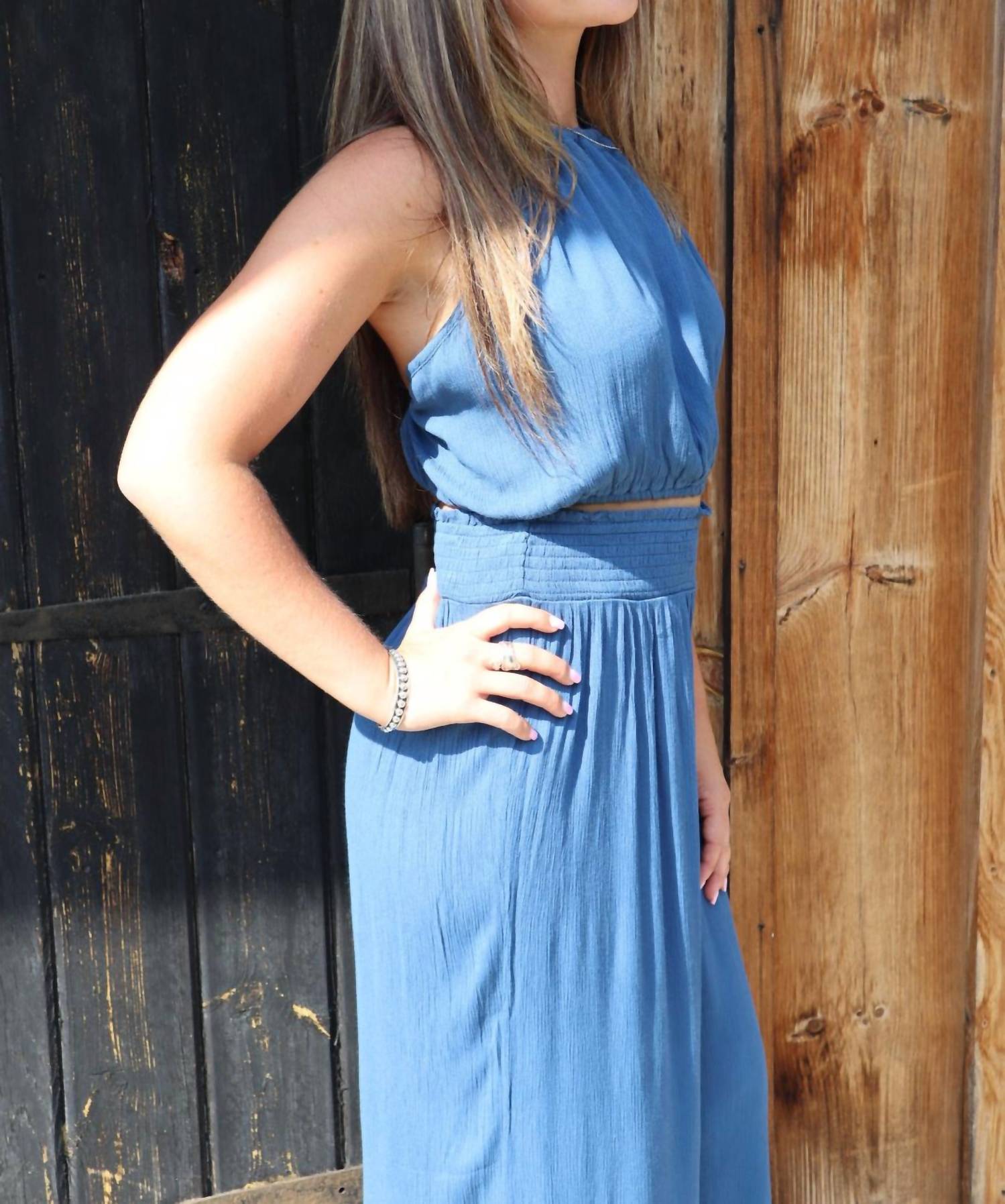 Embrace coastal charm with the Capri Smocked Pants by ELAN, designed for a breezy summer vibe in solid dark blue. Crafted from 100% viscose, these pants offer a super soft, lightweight feel, and feature a smocked stretchy waistband for all-day comfort. The classic fit wide leg design is high rise, with a convenient pull-on closure, ensuring effortless wear for any beachside vacation or boho chic occasion. Care: Hand wash cold for lasting wear. Cat is 5'1" and wearing a size small, with the pants reaching the floor when paired with platform sandals.