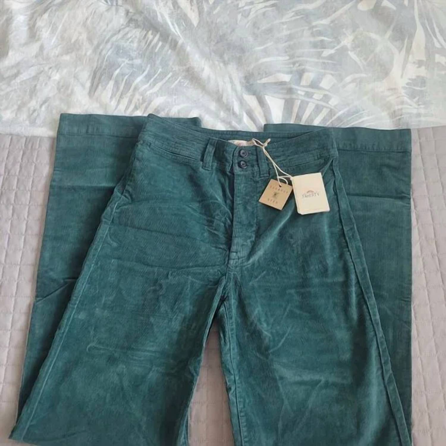 Introducing the Women's Stretch Cord Wide Leg Pant by Faherty, a staple piece in the lush Sea Moss hue perfect for vintage-inspired looks. These pants boast a soft stretch cotton corduroy material, a high rise, and wide-leg fit for all-day comfort and style. The classic 5-pocket design is complemented by a zip fly with a button closure. Composition: 98% Cotton, 2% Elastane. Care: Machine wash and tumble dry. Ideal for travel and weekend wear during the spring season.