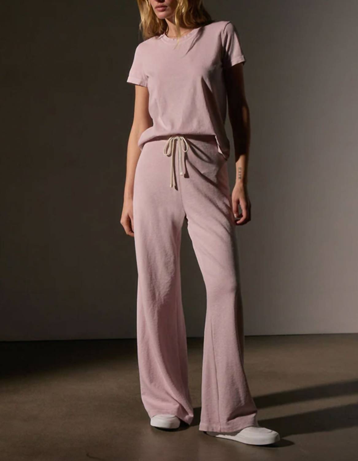 Embrace comfort in style with the Wide-leg Jogging Pants by JAMES PERSE, a staple for any wardrobe. Crafted in the USA from 100% cotton, these pants feature a relaxed, wide-leg fit with an elastic waistband and a medium rise for unparalleled ease. Closure is simple with a convenient pull-on design. For longevity, machine wash in cold water and follow care instructions on the label. Model is 1.78m tall and wears a size S.