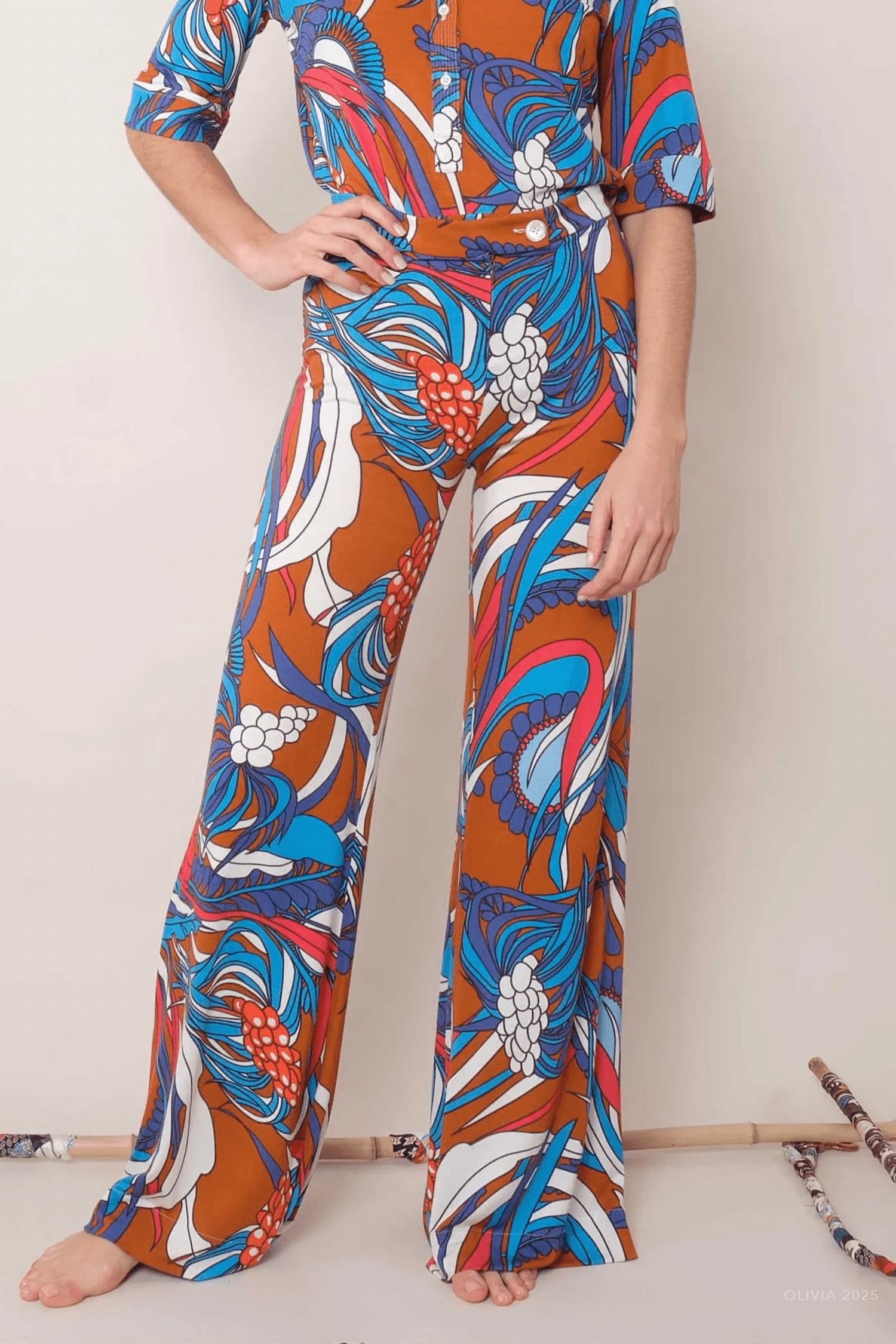 Elevate your ensemble with the Giudecca Pants by La Prestic Ouiston, featuring a relaxed fit and wide leg style in vibrant Spice Coral. Made in Europe, these high-rise, natural palazzo pants are expertly crafted from 95% viscose and 5% elastane for a luxurious feel. Closure is achieved with a zip and mother-of-pearl button on the front. To ensure longevity, these pants require dry cleaning.