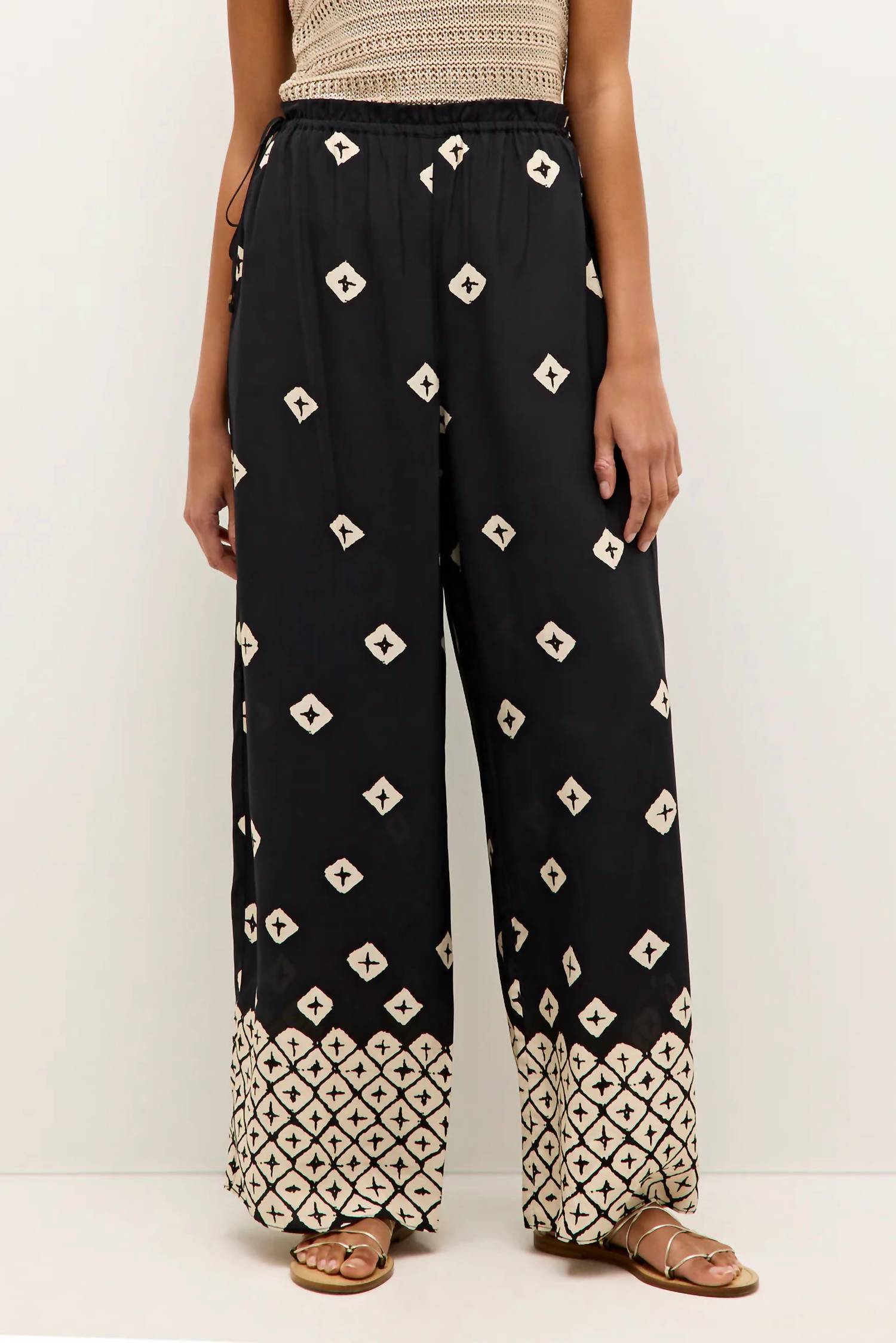 Elevate your summer wardrobe with the Marie Oliver Solange Pant in Ceramic, a chic wide-leg style perfect for vacation and everyday wear. This relaxed-fit, high-rise pant boasts an elegant patterned finish, crafted from 100% lightweight viscose for a silky touch and beautiful drape. It features a convenient slip-on silhouette with a snap closure and an elastic waist with drawstrings to ensure utmost comfort. Care for this boho chic piece by hand washing with gentle detergent and line drying or opting for dry cleaning.