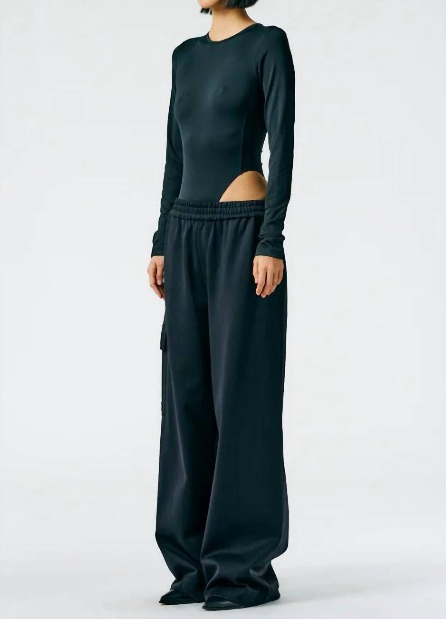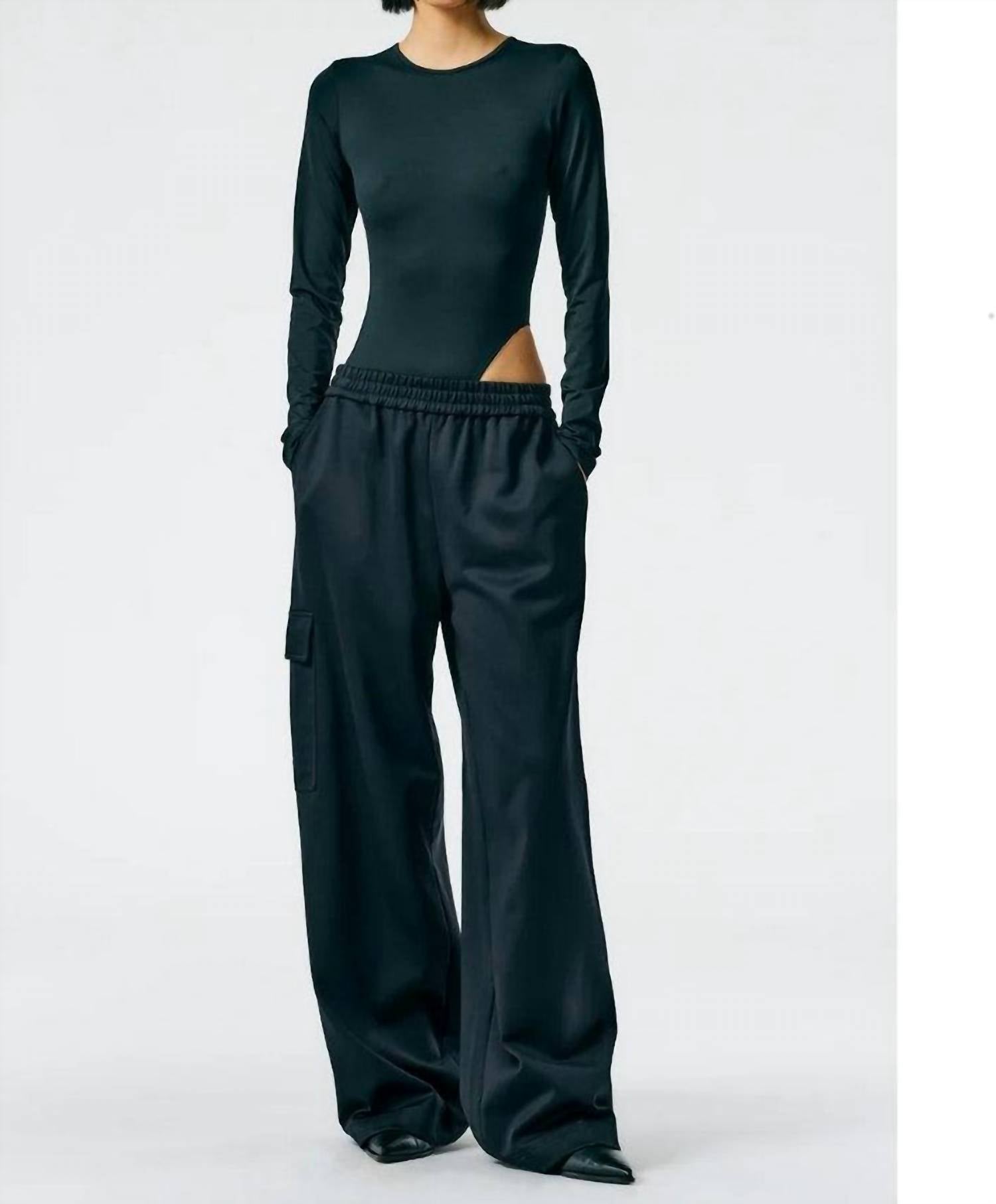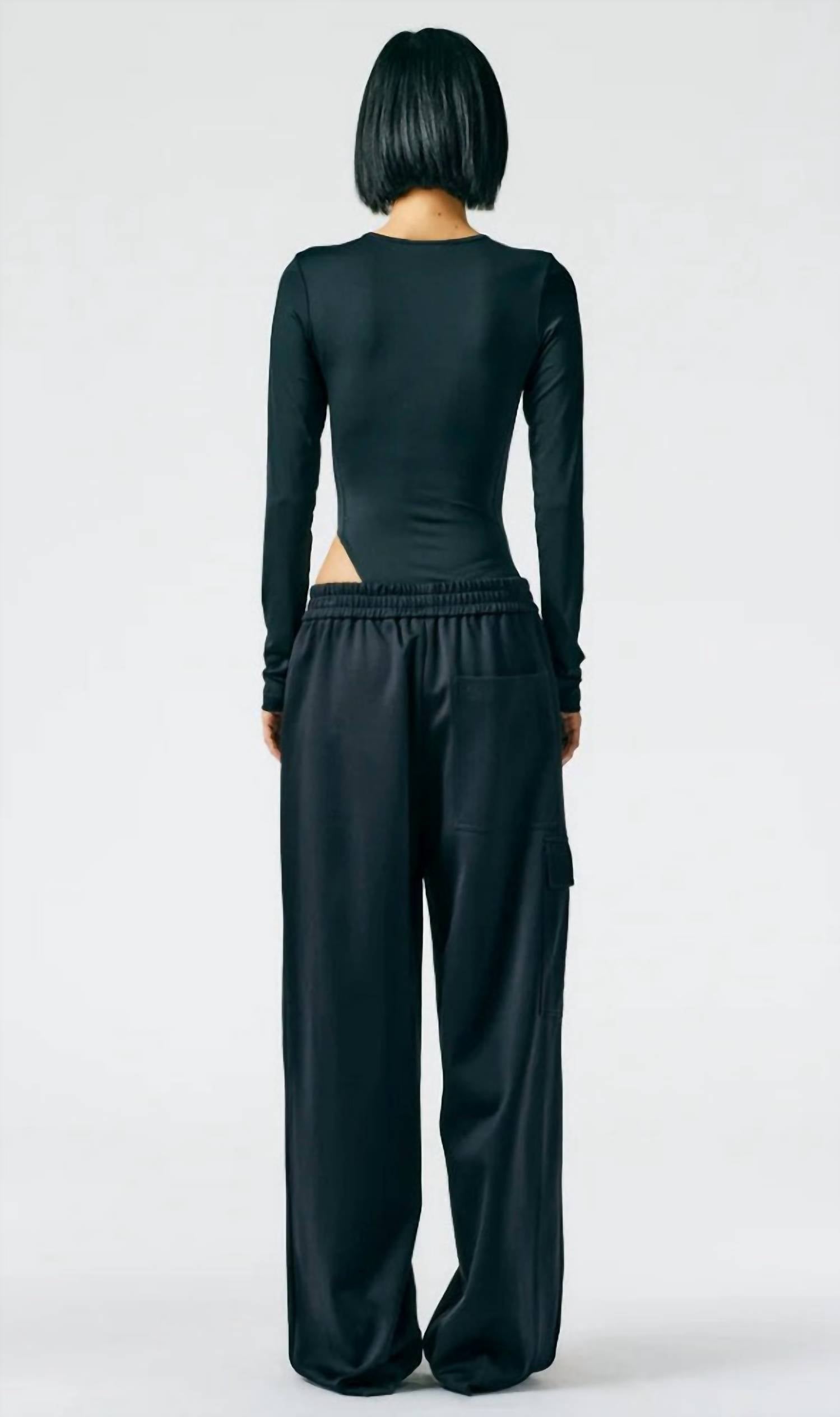 Elevate your casual ensemble with the Tibi Active Knit Wide Leg Pull On Pant, where relaxed fashion meets premium textiles. Tailored in a low-rise design, these pants are crafted from 59% Polyamide, 38% Cotton, and 3% Elastane, ensuring a comfortable fit that sits just above the hip. The innovative snap detail at the hem provides a dynamic adjustment to the pant length, complemented by an adjustable waistband for ultimate versatility. Color: Black, these pants are a chic addition to your fall streetwear collection, perfect for travel and Thanksgiving occasions.