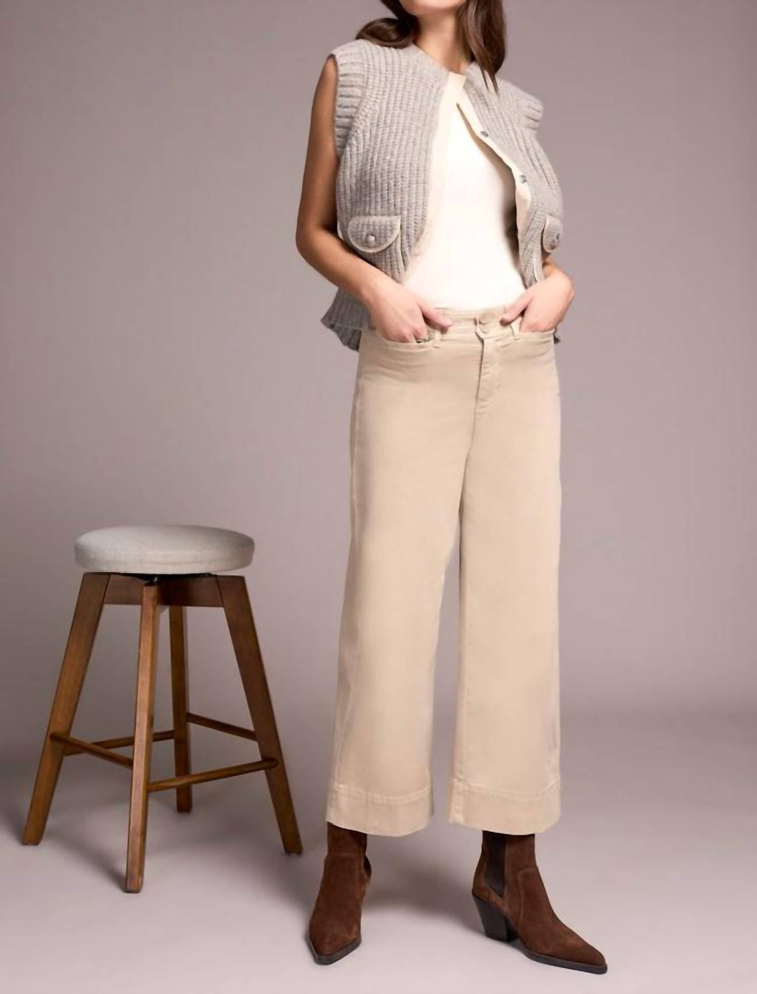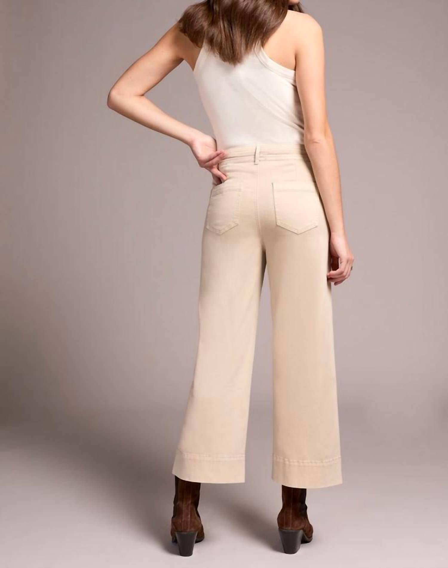 Elevate your wardrobe with the TRIBAL Comfort Stretch High Rise Palazzo Pants in Sandstone, perfect for a holiday party look. These pants feature a high-rise waist and a 26” inseam, showcasing a wide-leg silhouette that offers a minimalist style. Crafted from a cotton blend with soft stretch twill fabric, they promise all-day comfort with functional front slit pockets and back patch pockets. The decorative waistband topstitching and double-button closure add a tailored touch, while care is simple with a machine wash and tumble dry routine.