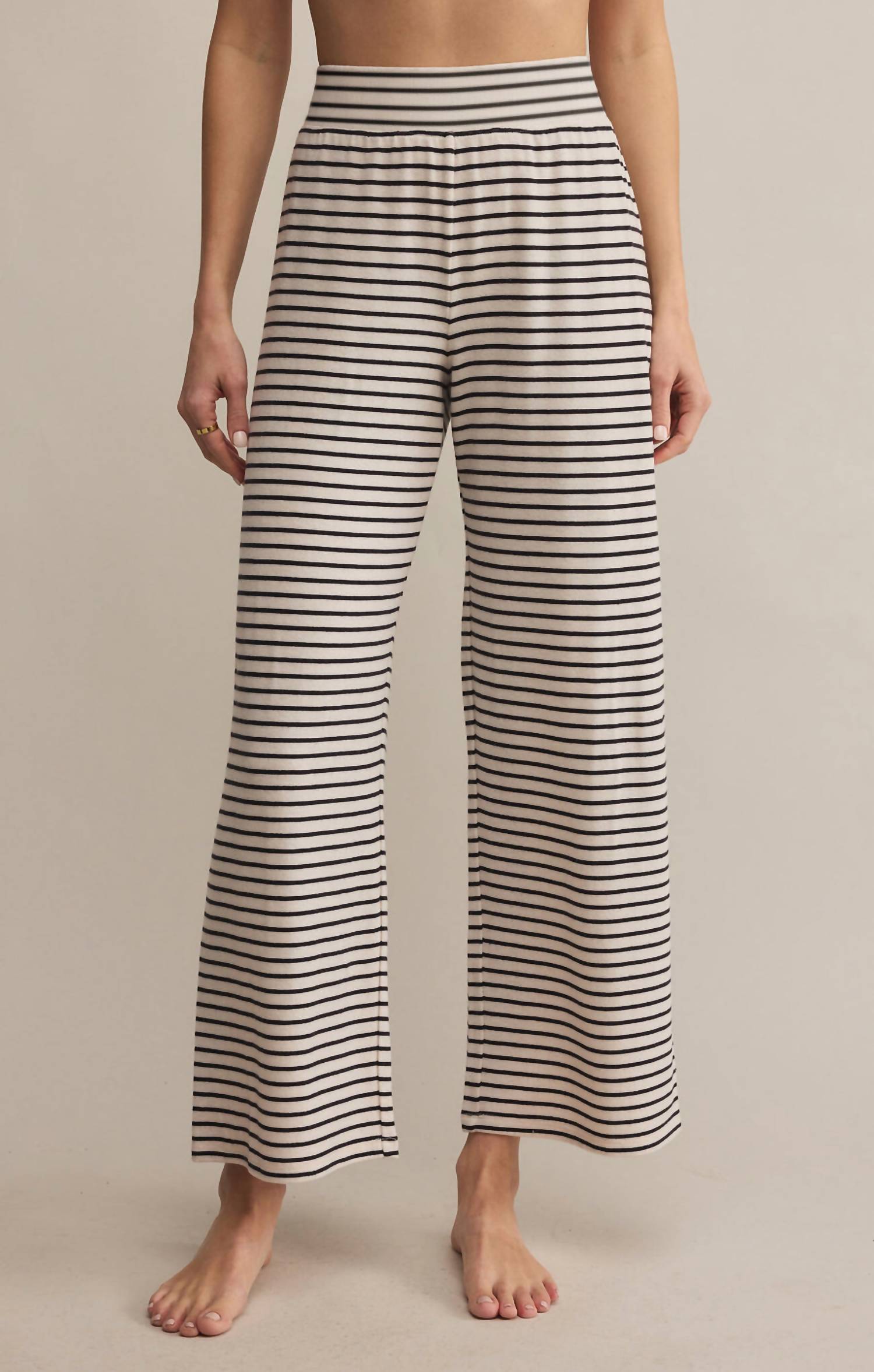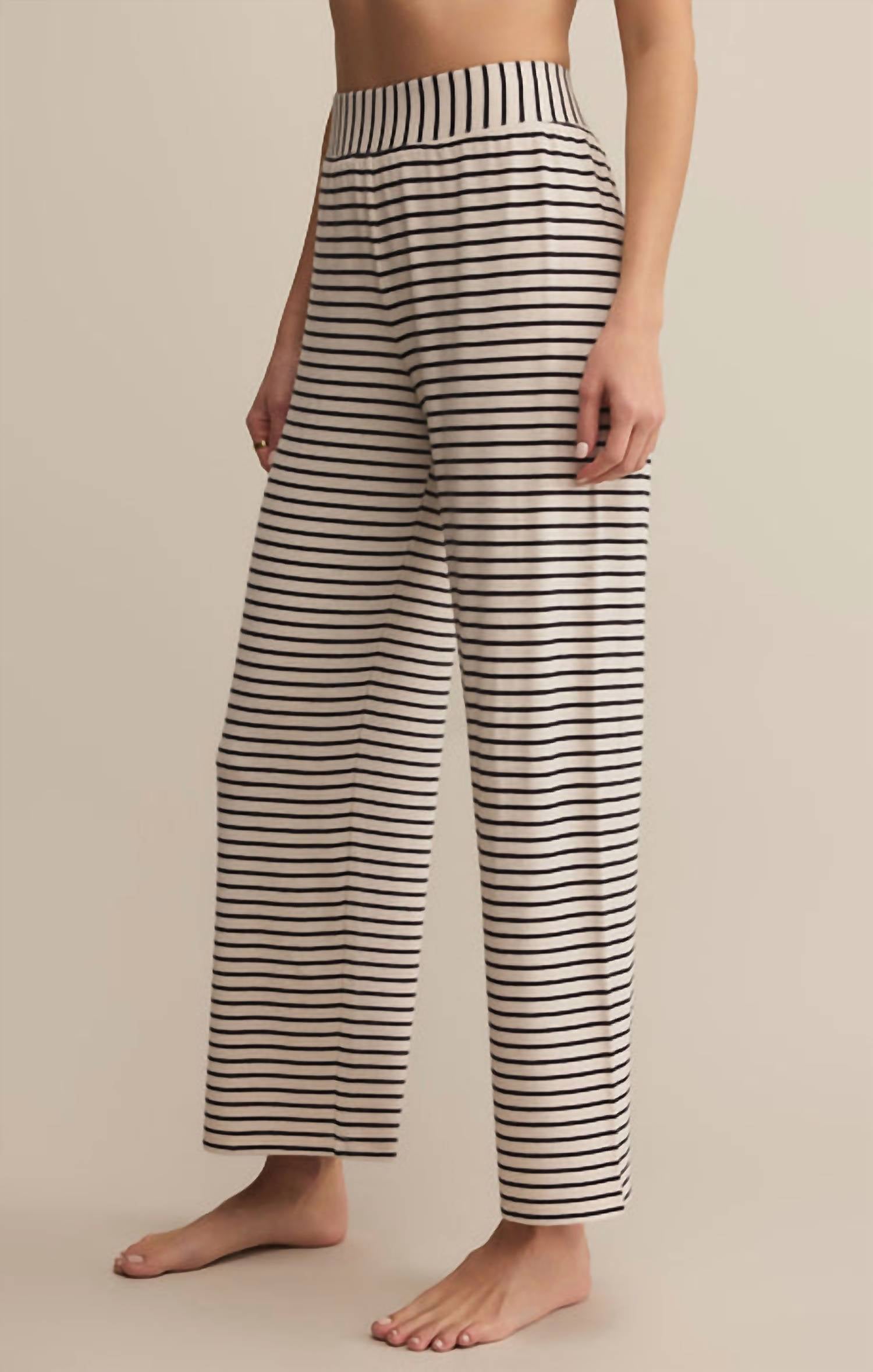 Elevate your spring wardrobe with the Luxe Stripe Pants by Z Supply, designed in a chic ivory/black stripe pattern. These women's wide-leg pants boast a relaxed fit and high-rise waist for effortless elegance. Crafted from a blend of 62% Polyester, 34% Rayon, and 4% Spandex, they offer comfort and style without pockets for a sleek look. Closure: Pull on. Care: Machine wash and line dry. Perfect for vacation or Easter occasions.