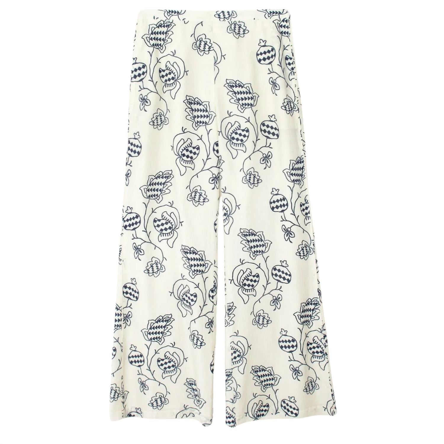 Xirena Pippen Pant Cotton, Silk in Cream Pom Wide Leg Pants Pomegranate Printed Elastic Waist Side Seam Pockets Inseam 31" True to Size Machine wash cold, gentle cycle, hang to dry Made in Los Angeles, C.A.